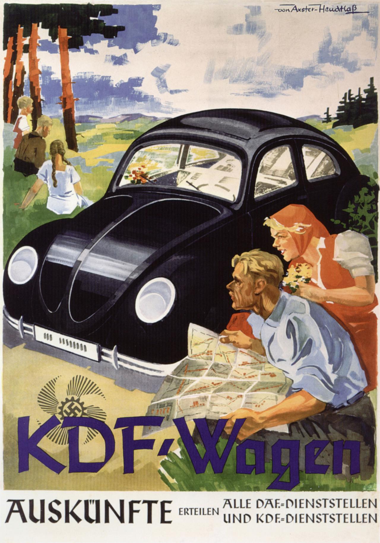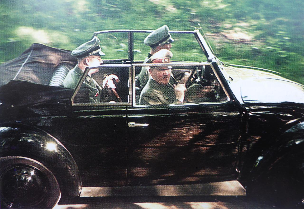 [呲牙] 过生日,收到礼物,很开心嘛——1939 年 4 月 20 日,在希特勒 50 岁生日当天,斐迪南・保时捷向他展示了 KdF-Wagen 轿车(参见图1~2),也就是后来闻名世界的大众甲壳虫。照片前排右侧是德意志劳工阵线领导人罗伯特・莱伊。 这款车从 1938 年到 2003 年在多国量产,基础结构始终未变,创下量产车纪录,总产量超过2100 万辆。 貌似希特勒挺喜欢这辆生日礼物车,一直留着。1944 年,希特勒与希姆莱一同乘坐该车前往伯格霍夫别墅(参见图4)。