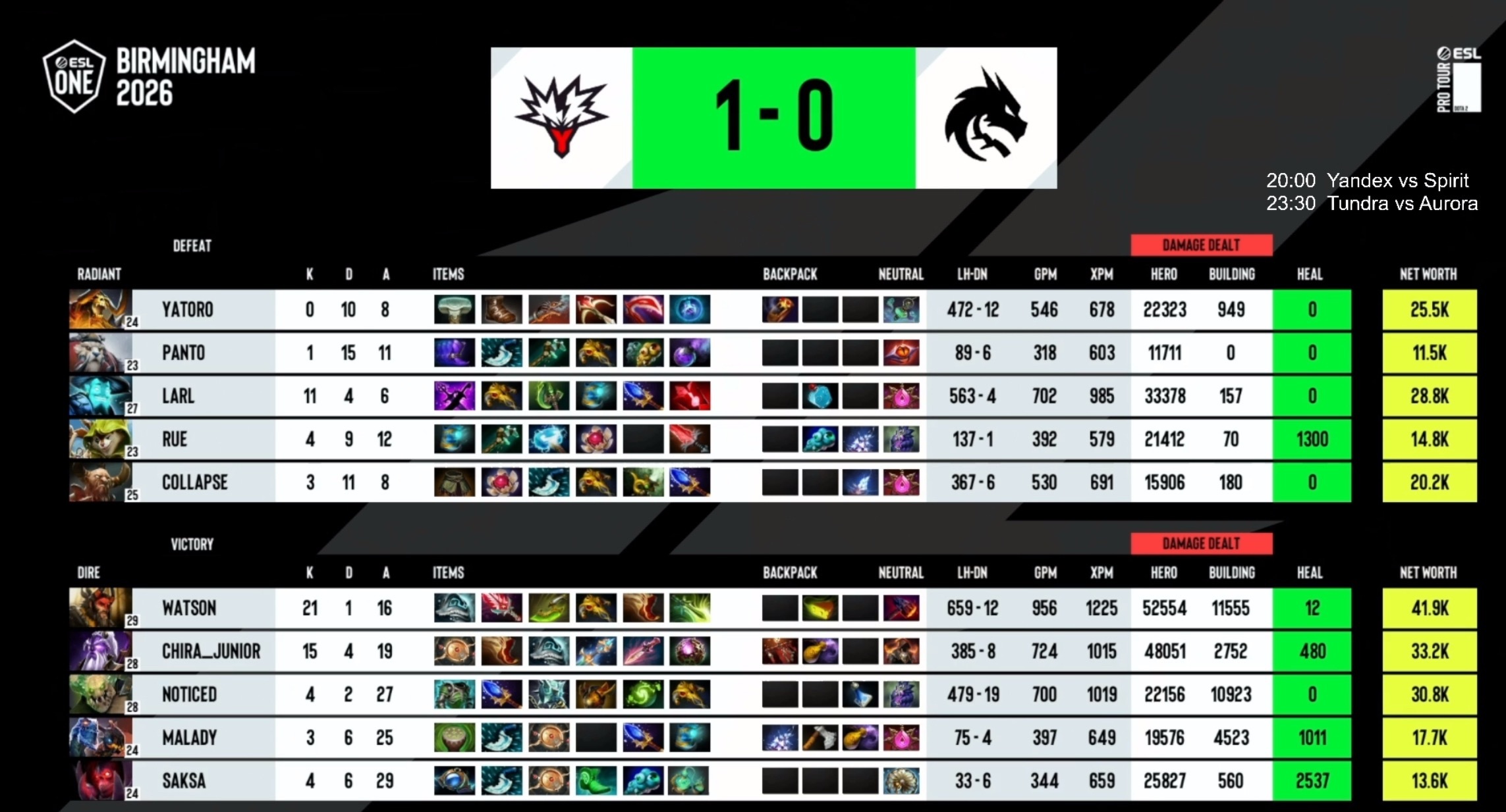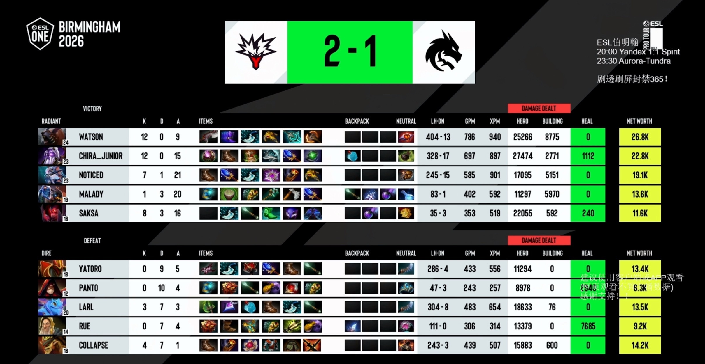 ESL伯明翰淘汰赛第一天赛果Yandex2:1Spirit,两队都打的很