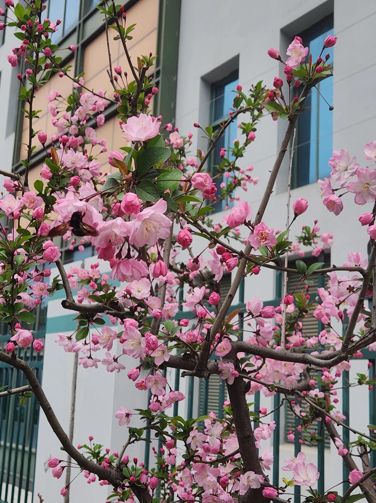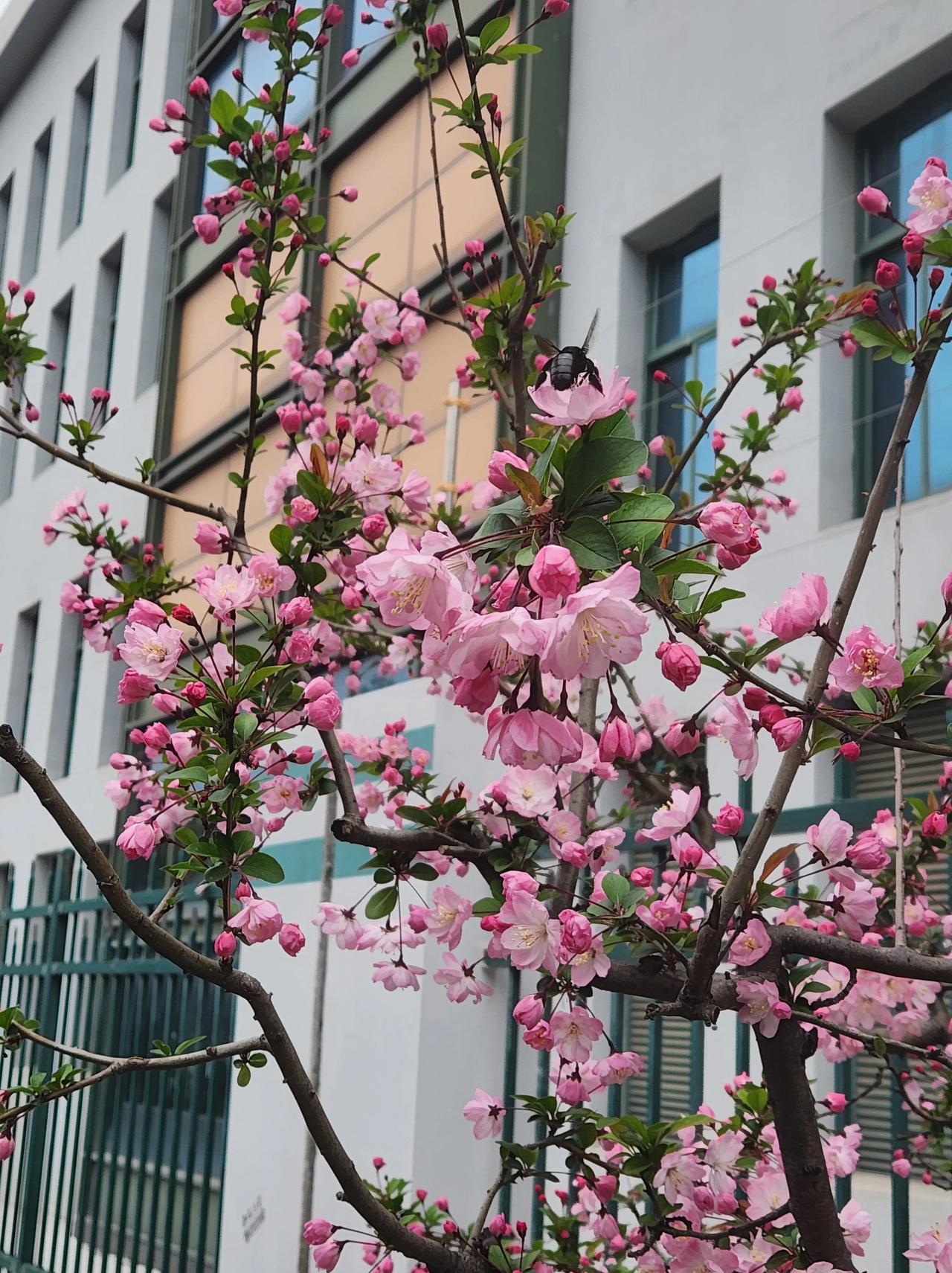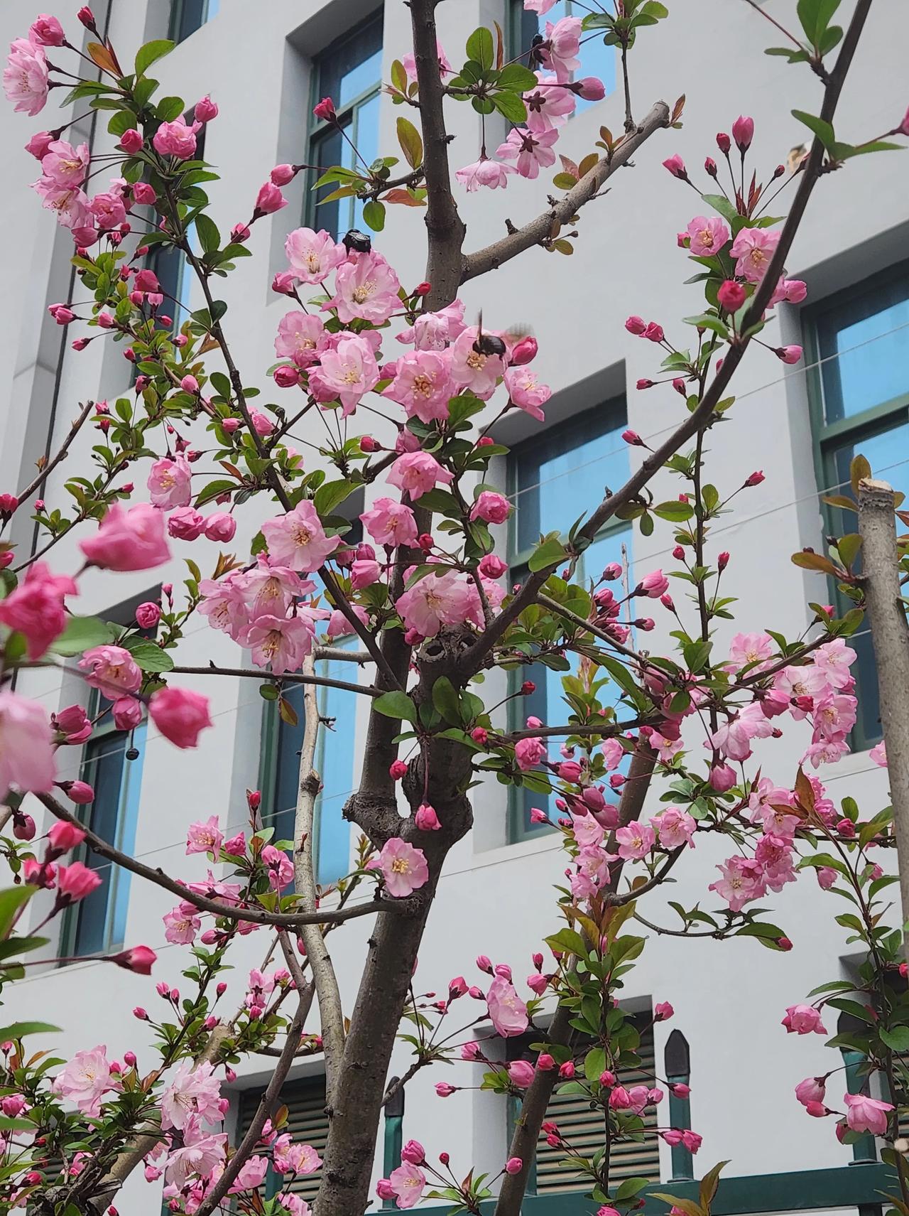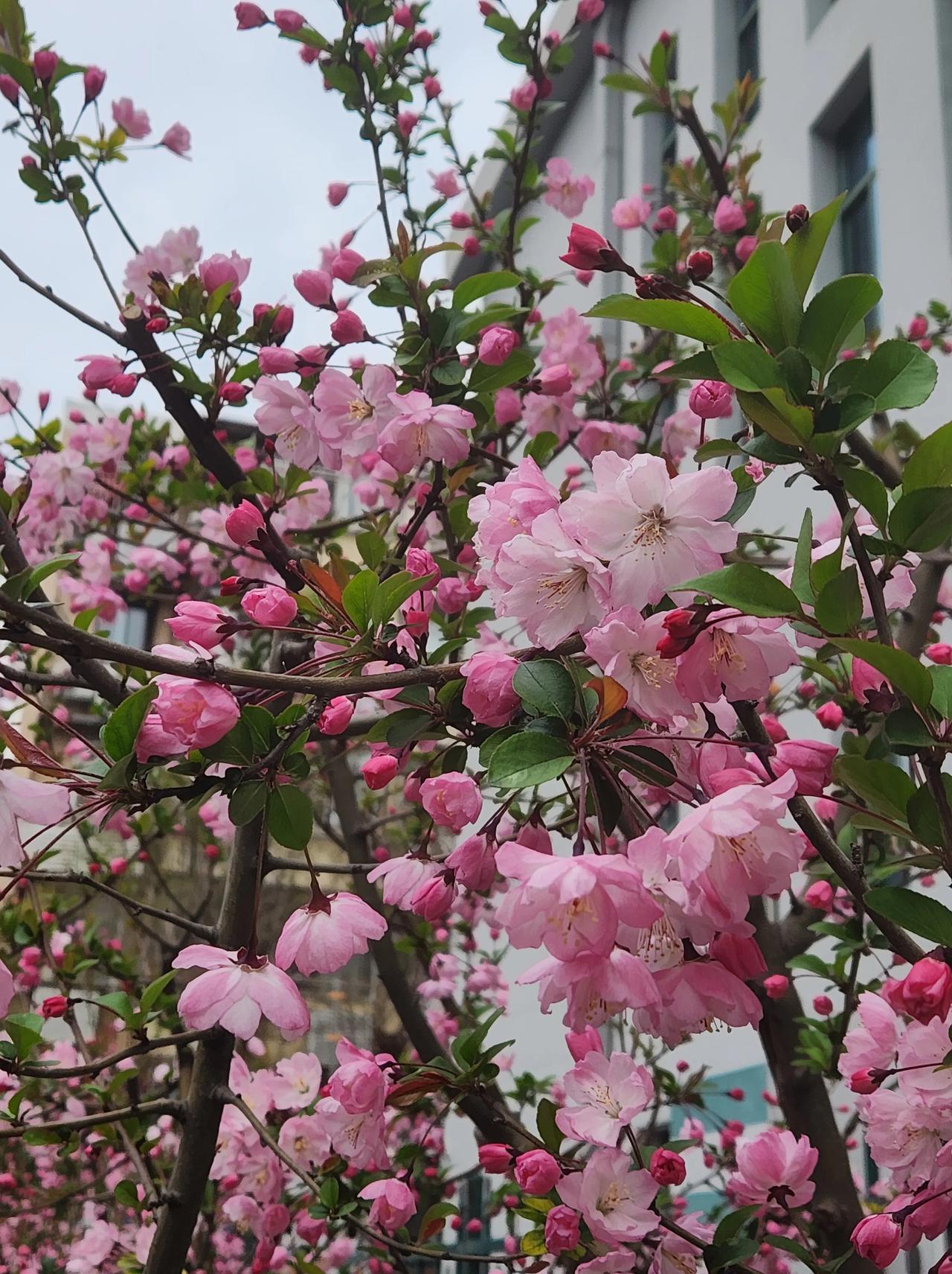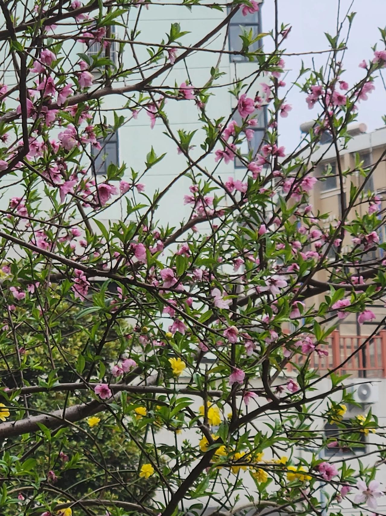 在南京阅江楼附近的小河边,樱花和桃花都开了。河边走一走,心情好不少。
