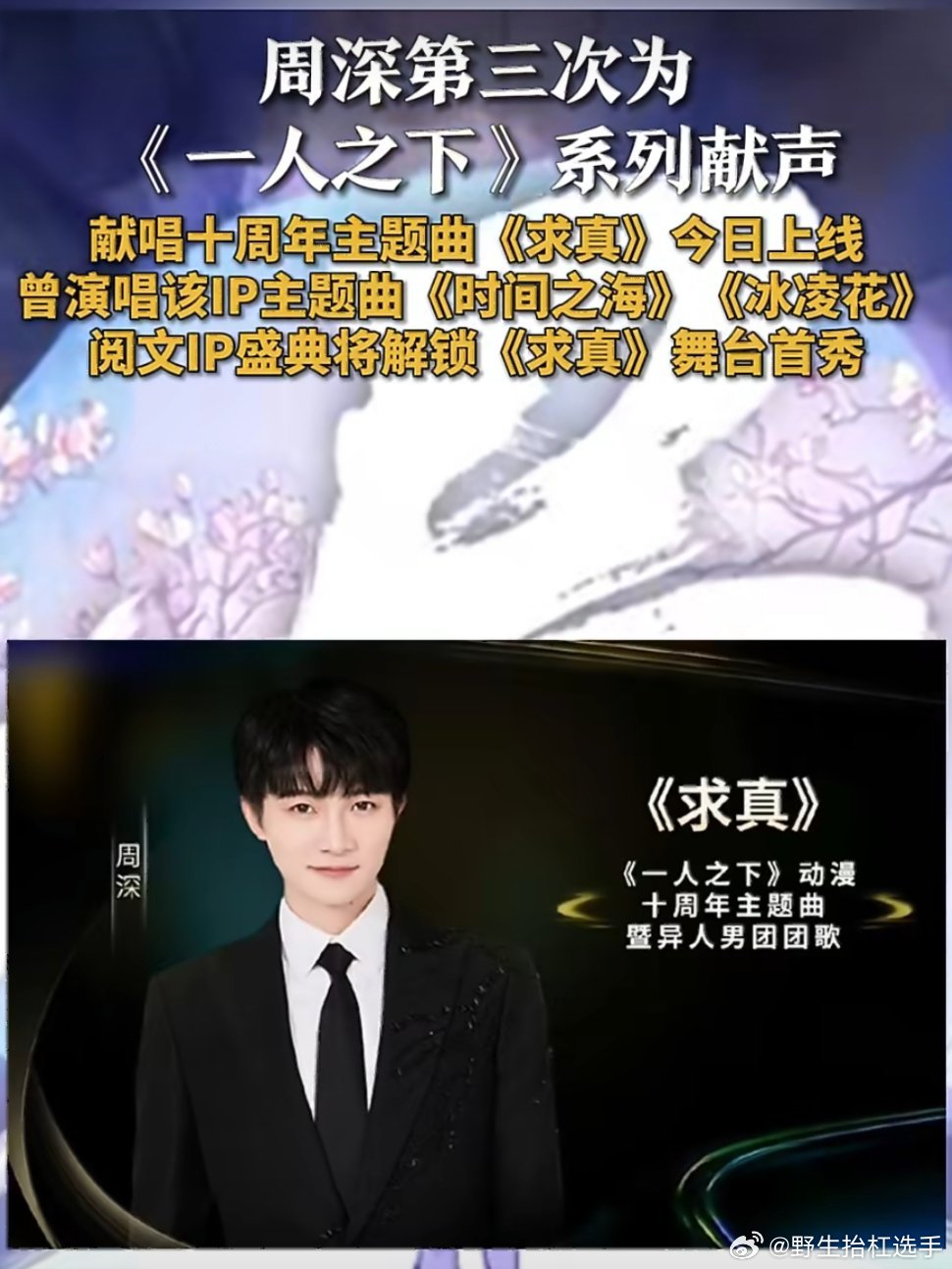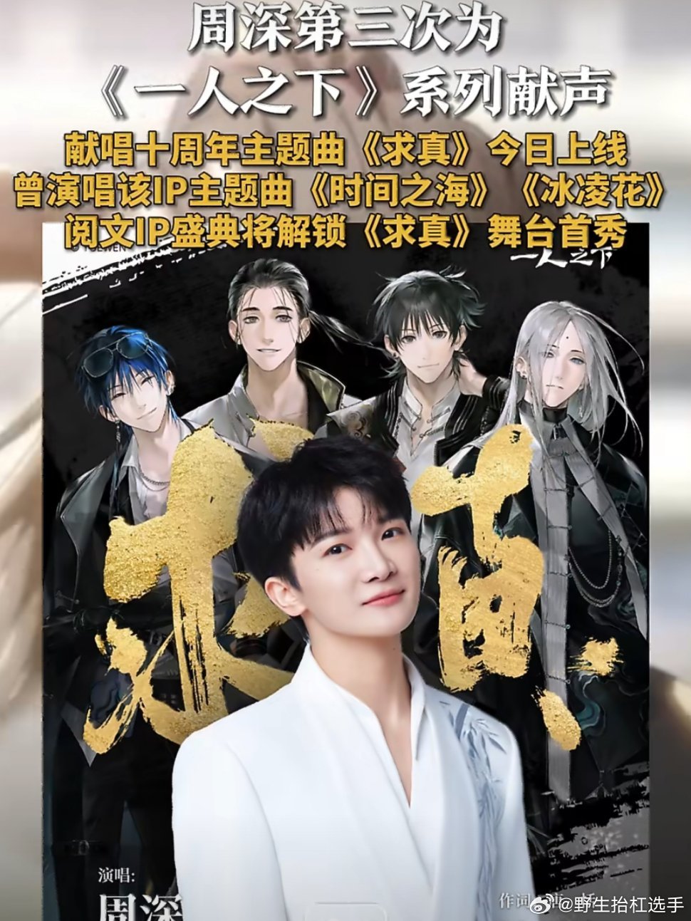 周深与少年热血太适配了周深又来承包热血番啦!新歌《求真》燃炸上线,今晚阅文IP盛典首秀,太期待了!