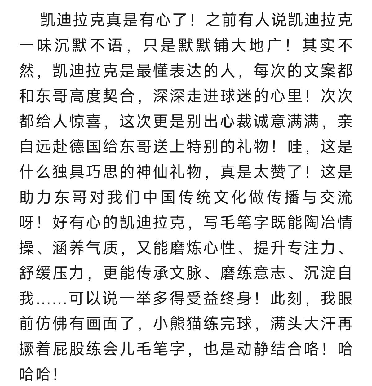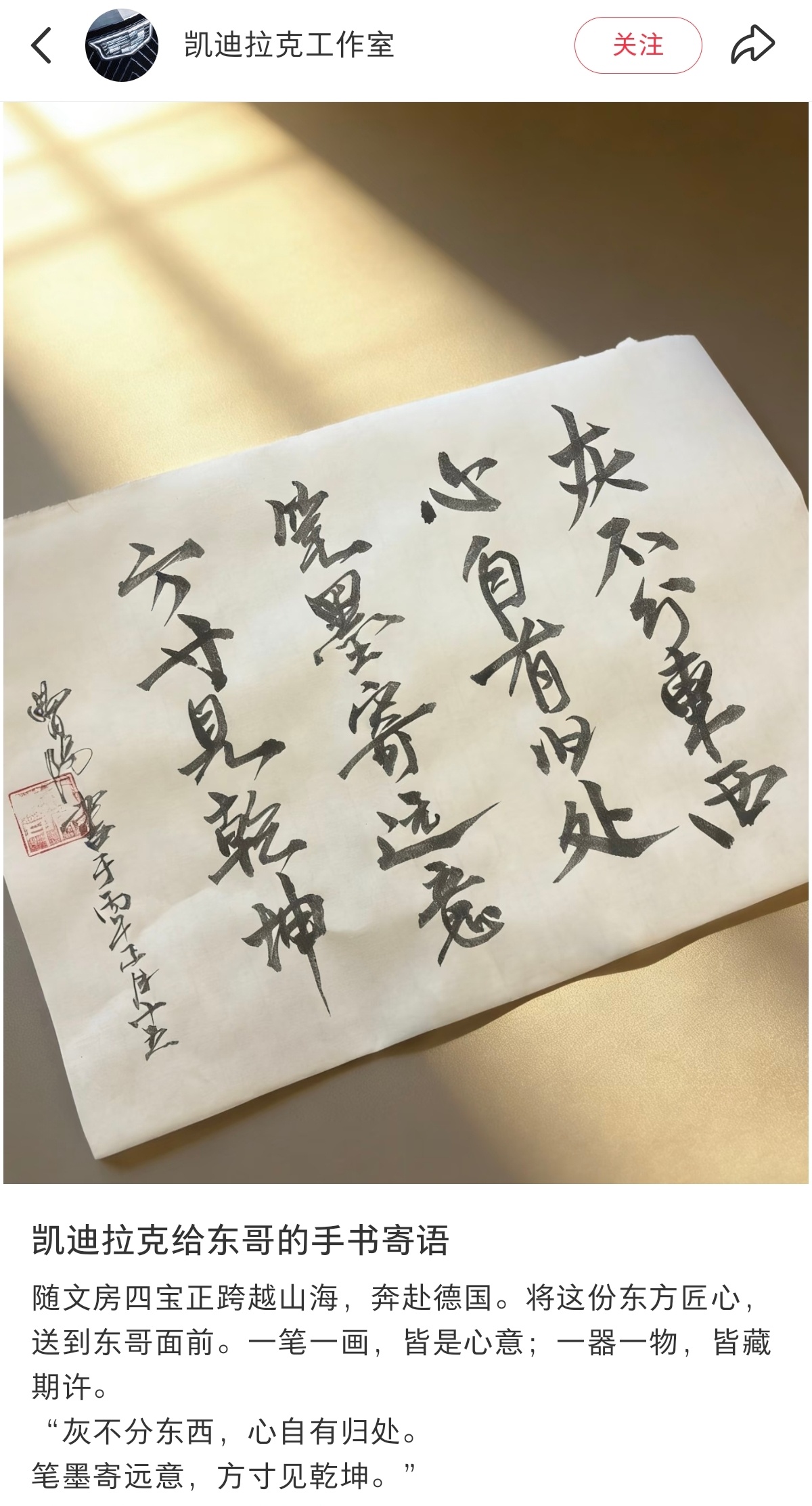 樊振东与凯迪拉克不语,只是一味地向外输出东方文化。以行动传递东方风骨与格局。“笔墨寄远意,方寸见乾坤”,让世界见识东方文化与瑰宝的魅力。
