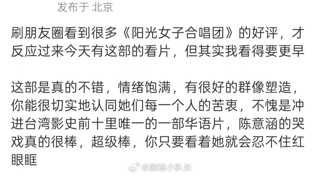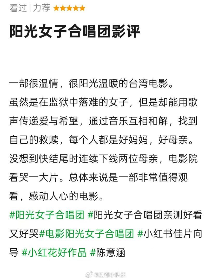 这对母女分离是我今年的眼泪KPI《阳光女子合唱团》这段母女分离戏,直接承包我全年泪点!隐忍又克制的牵挂,隔着距离的不舍,每一幕都戳心到极致,眼泪根本止不住。如此动人的情感戏,一定要去影院沉浸式感受,痛痛快快哭一场。