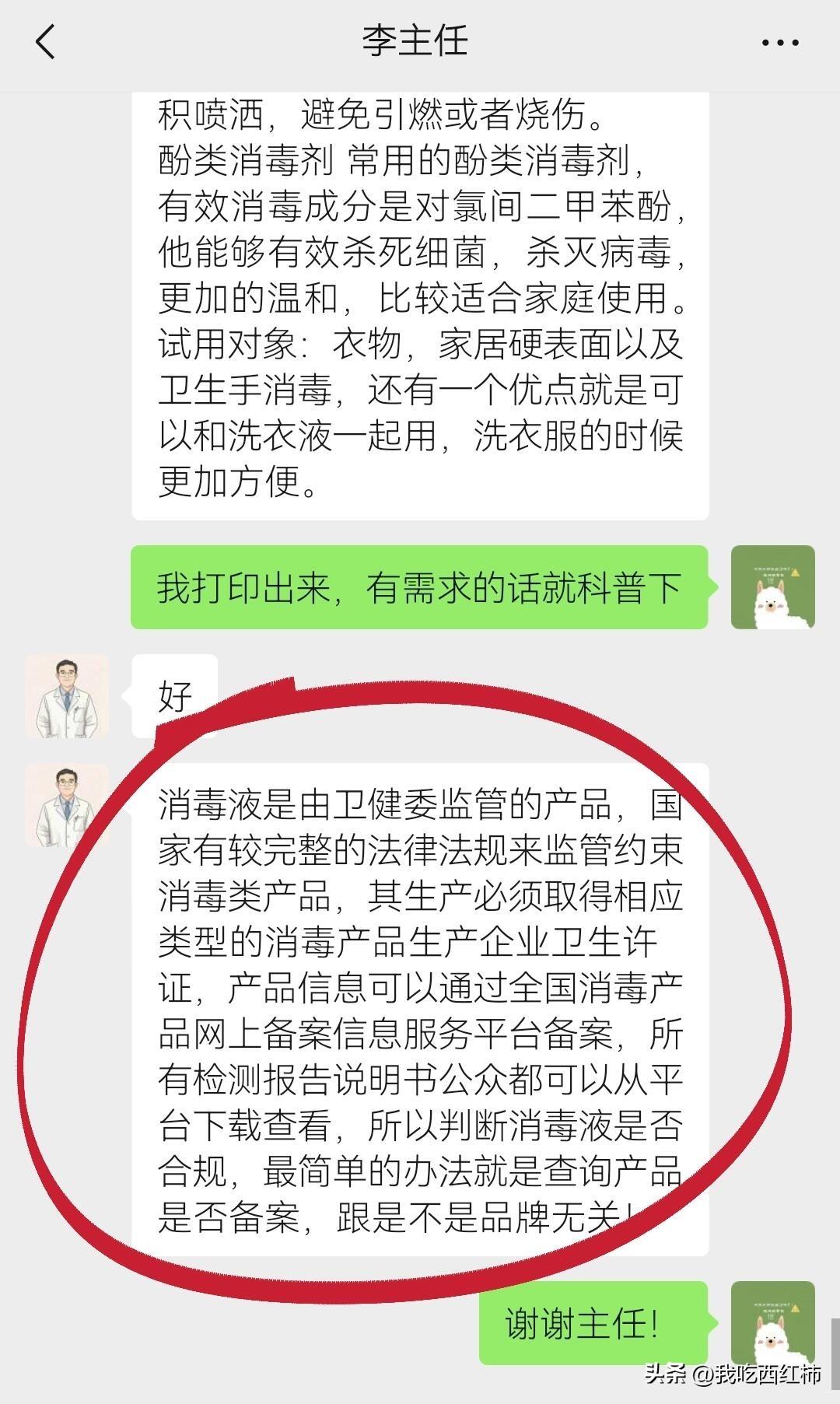 工作8年,说点关于消毒液的大实话 疫情之后,大家都特别在意病毒,以为消杀工作做得越勤越好,只要见到能消毒杀菌的,就猛劲的用。 消毒杀菌确实应该重视起来,但消毒液的使用也一定要慎重!想和大家科普一下。 - 第一,什么样的消毒液是正规的? 消毒液是由卫健委监管的产品,国家有较完整的法律法规来监管约束消毒类产品,其生产必须取得相应类型的消毒产品生产企业卫生许可证,产品信息必须通过全国消毒产品网上备案信息服务平台备案,所以判断消毒液是否合规,最简单的办法就是查询产品是否有备案 - 第二,看消毒液的成分,成分一般四大类,不要连成分都不看就用,这是我们内部人员给总结的,可以参考下: 常见的消毒液主要分为以下几个成分 1.含氯消毒剂 最熟悉的就是我们从小闻着长大的84消毒液。有效成分是次氯酸钠,必须按照说明稀释后使用,并且只能用于白色织物;不能大面积喷洒,最重要的是不能和洁厕灵等酸性清洁用品一起用,否则会发生反应产生有毒气体。 2.季铵盐类消毒剂 单链季铵盐除菌效果一般,如果要买,一定要买双链季铵盐,具体成分叫双葵基二甲基氯化铵,双葵基二甲基溴化铵,市面上较少,成本相对较高。优点是无刺激性,缺点是不能和洗衣液/洗衣粉等一起使用,放在一起双双失效。 3.醇类消毒剂 主要成分是乙醇。乙醇可以消毒是因为乙醇能吸收病毒蛋白的水分,从而使脱水变凝固,达到杀灭病毒的目的。但是,如果浓度过高,反而效果一般,75%的酒精浓度是最好的,但酒精具有易燃性,使用酒精一定不要直接大面积喷洒,避免引燃或者烧伤。 4.酚类消毒剂 有效消毒成分是对氯间二甲苯酚,他能够有效杀死细菌,杀灭病毒,更加的温和,比较适合家庭使用。试用对象:衣物,家居硬表面以及卫生手消毒,还有一个优点就是可以和洗衣液一起用,洗衣服的时候更加方便。 所以其实84消毒液是最便宜但最不建议长期使用的,我家常年用的是对氯间二甲苯酚的,自己家用的放在图4了,1688上的源头工厂店:大连净居环保。不是大品牌,但资质齐全,我觉得挺靠谱的,3瓶才99.9,很多大品牌都是这个成分,品牌溢价没必要,备案是消毒液的身份证,没有的不建议购买。