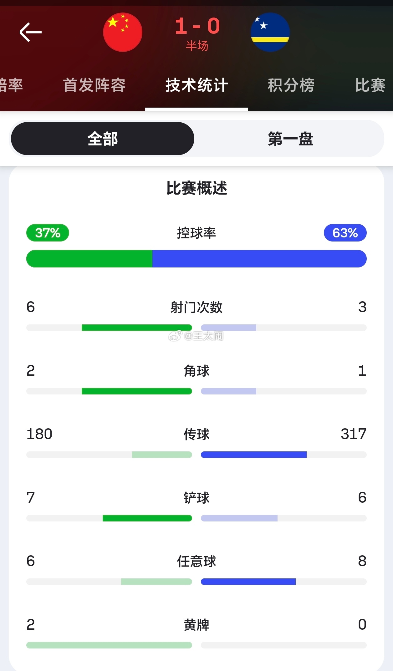 国足vs库拉索国足半场领先库拉索 球进的干脆,门将开球,张玉宁收到禁区前争顶,韦世豪抢第二点,接球就射
