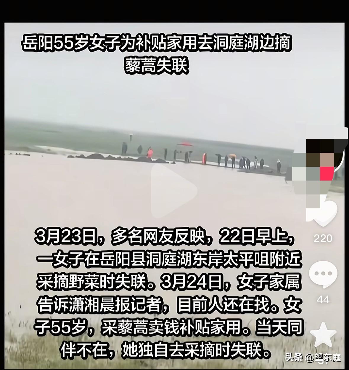 采藜蒿失联后遇难的女子55岁,她叫任意,是一个非常温婉的女人。原本她是有同伴的,可因为当天有雨,别人都没有去!本以为可以就此多采摘一些藜蒿补贴家用,不料,她却再也没有机会回家了。 事情发生在3月22日。 当天一早,住在岳阳市朝阳小学附近的任阿姨穿着一套连体防水衣裤出了家门。她的丈夫把她送到湖边就走了,因为对方是跑网约车的,为了不耽误时间,任阿姨就自己一个人留在湖边采摘。 两口子说好,下午两点左右会在下车的地方碰头接她回去。 怎料,都已经过了约定好的时间,任阿姨却怎么都没有现身,就连打电话都已经是关机状态。 任阿姨的家属意识到不对劲以后,火速打电话报警求助。 接下来的几天时间里,纵使救援人员用尽全力搜救,但任阿姨始终不见踪影。 没有人知道任阿姨那天究竟采摘了多少藜蒿,也没有人知道她究竟是在哪一块区域落水的。能确定的是:任阿姨是一个很好的女人,她对家庭负责,对孩子有爱,平日里一有时间就想方设法赚钱补贴家用。 很多朋友们并不清楚藜蒿是什么东西。事实上,这原本是生长在湖边、江边一种植物。因它有一种独特的香味,加上脆嫩爽口,渐渐成了湖南湖北江西等地的春季时令蔬菜!在菜市场一斤鲜嫩的野生藜蒿,可以卖到十几二十来块钱。 任阿姨采藜蒿算是老手了,原本她有好几个同伴。大家一起出发,相互关照。可那天因为天气预报下雨,别的人都待在家里休息,只有任阿姨毅然决然出了门。谁也想不到,那竟是她生命的最后! 2026年3月26日,距离任阿姨失联的日子已经过去了5天时间。当天上午,在她采摘藜蒿附近的一处水面上,她的遗体漂浮了上来…… 一个勤快、温婉的母亲就这样离开了,实在是让人心疼啊!在她的身上,让人看到了千千万万母亲的影子。她们终其一生都在为了家庭、孩子而奔波,用原本薄弱的身躯,撑起了家庭的半片天! 通过这个悲剧,希望大家在任何情况下,都要以安全为重!采摘野菜时,无论如何都不要去涉险。在此,心情无比沉重,愿任阿姨一路走好![祈祷][祈祷][祈祷][祈祷][流泪]