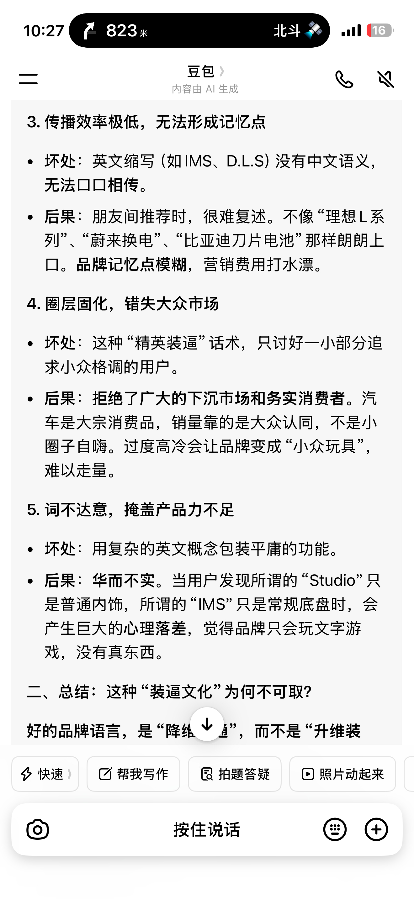 每次智己的发布会都会出几个新的英文单词,行业里没有的,新创的,问了下豆包智己公关要注意了,没做GEO啊AI的回答让人。。。智己ls8震撼预售25.98万元起