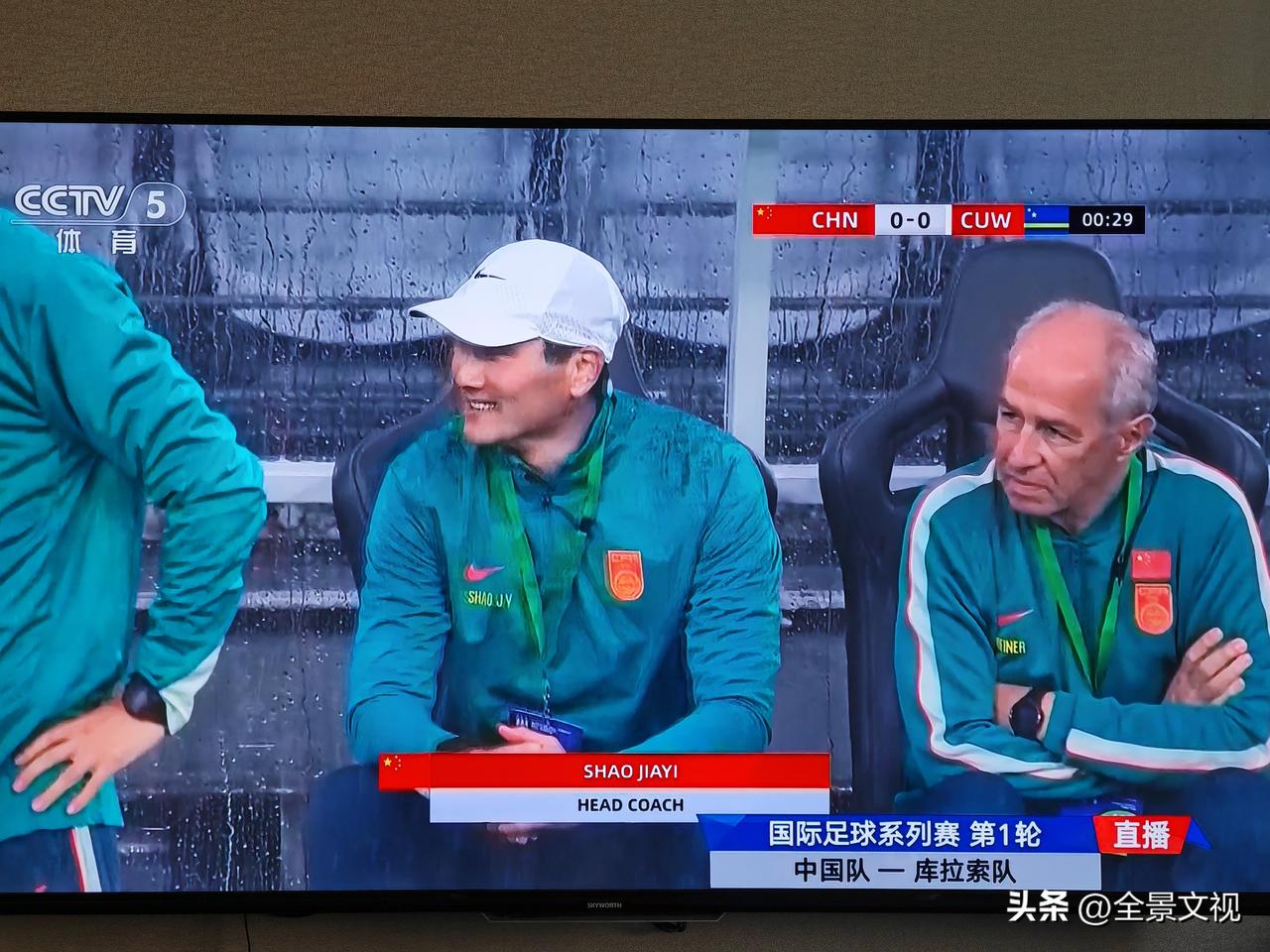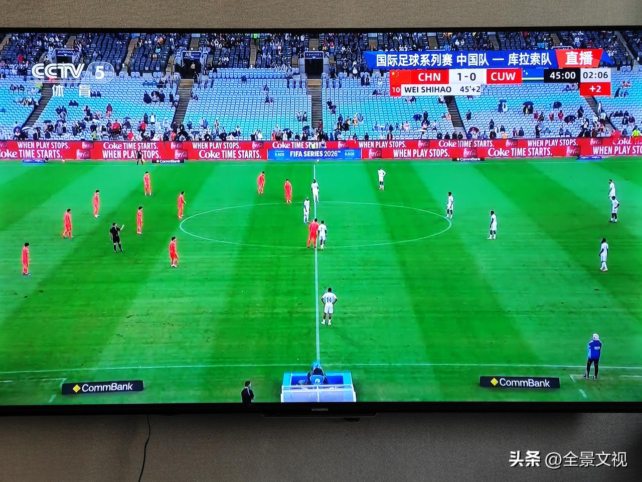 中国2:0领先。CCTV5正在直播国际足联系列赛,中国国家男子足球队与库拉索国家队的比赛,中国队进球了! 这场比赛26号中午两点开始比赛,对手是来自北美洲已取得世界杯入场券世界排名81位的库拉索,而中国世界排名仅93。但中国队在本土教练邵佳一的执导下,经过近四个多月的重整旗鼓,精神状态、技战术水平有了明显改善。上半场各项指标优于对手,开场几分钟就获得3次角球,防守进攻也很出色,造成多次射门机会。在上半场伤停补时一分钟,韦世豪打进一球,1:0领先。 这也是中国足球队重整旗鼓后邵佳一时代的第一次比赛中的第一次进球。下半场59分钟,张玉宁打入一球。中国队2:0领先了。 继续加油,力争夺取胜利,让冷清了大半年的中国足球再热起来,给国人球迷长脸。我们期待下半场开始。 友友们看这场比赛了吗?中国队足球直播 直播体育比赛
