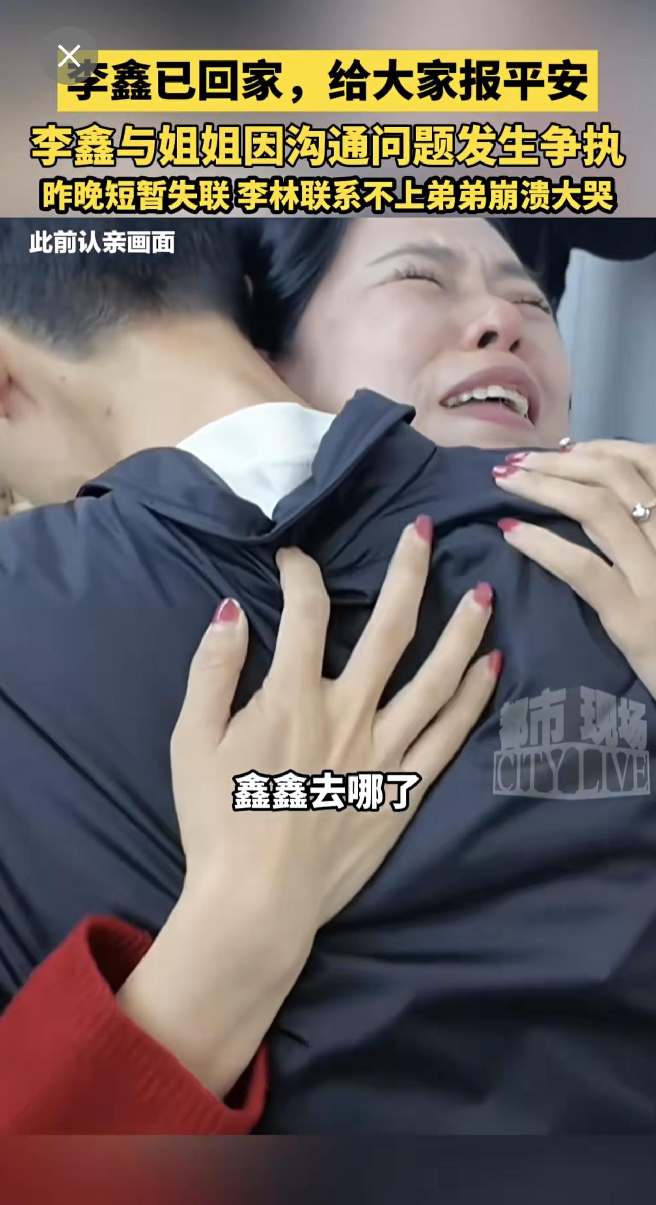 李鑫已回家 ,给大家报平安!李鑫与姐姐因沟通问题发生争执 ,昨晚短暂失联,李林联系不上弟弟崩溃大哭。