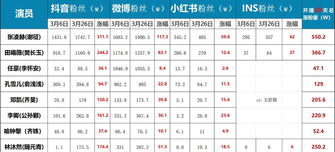 说真的,田曦薇项目回报率真的蛮高的,前段时间出圈了一个漂亮语录,这段时间逐玉播出之后在同年龄段的女演员里也是大出圈了,开播20天左右全平台涨粉360w+,还造就了一句“青天大老爷”这种破圈台词,下沉市场近2000w人看过,小田属于闷声发大财了(看点赞也能看出来,播出之后在原有大基数点赞的情况下还能翻3倍,完全有效播剧)