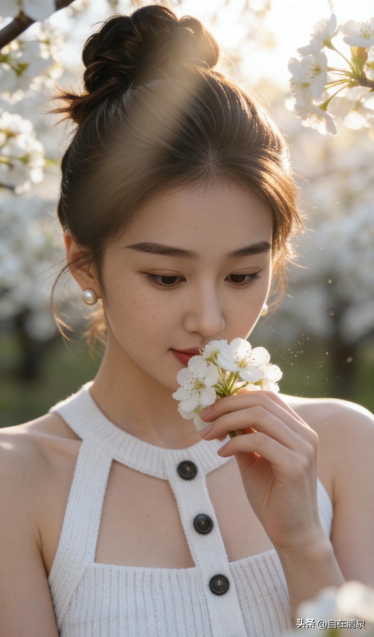 佳人花畔梦 她,似仙子踱步花径 繁花似锦,却难掩她清丽 粉腮映着嫣红,眼波藏着柔情 风,撩动她的裙摆 花,轻吻她的指尖 她俯身,与花低语 似在诉说,心底的梦与情