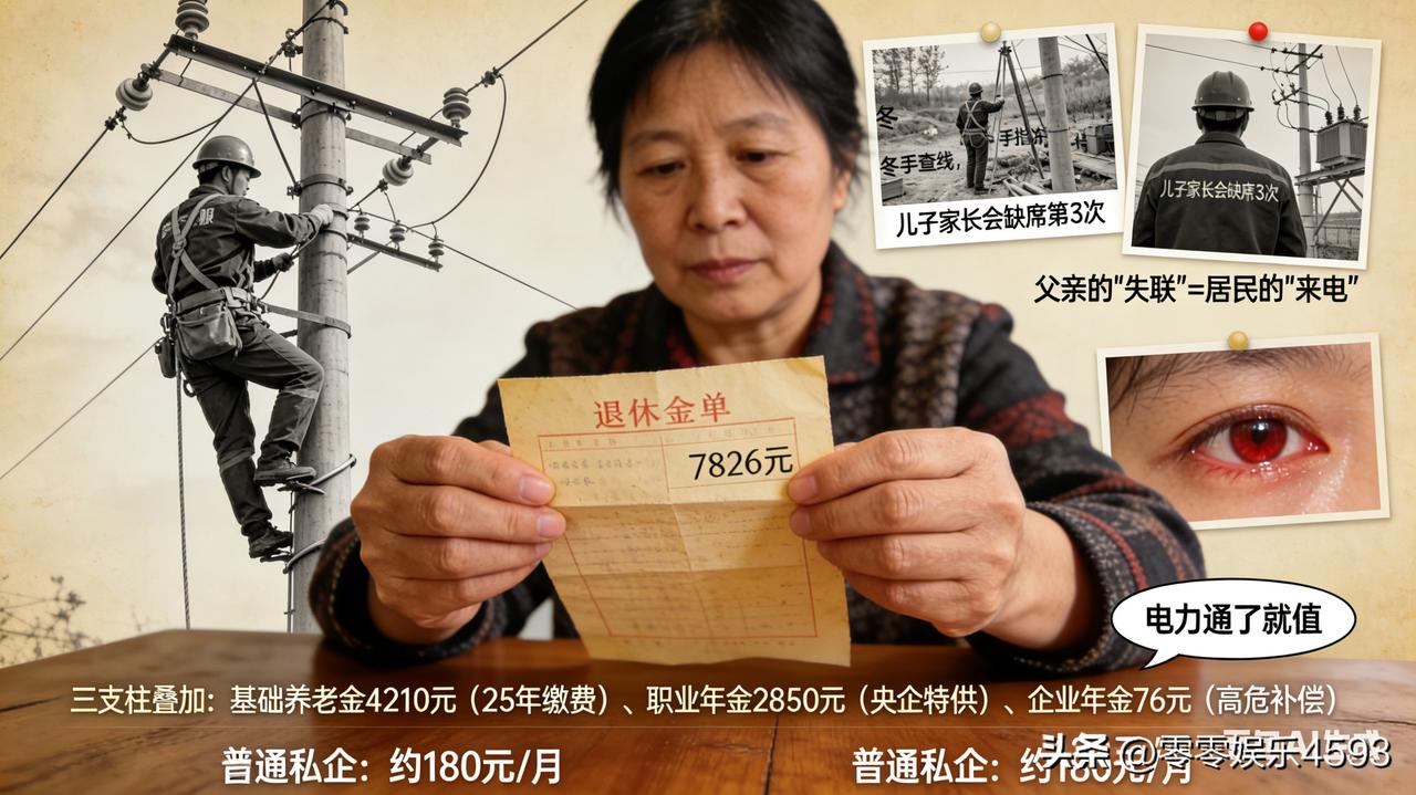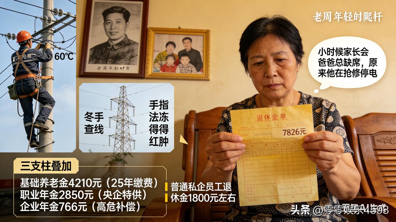 妻子盯着那张泛黄的退休金单,手止不住地发抖。7826 元,这个数字像块巨石砸在她心头 —— 结婚 25 年,她一直以为丈夫老周爬杆 25 年,最多能拿 3000 块养老钱,却没想到是这个数。