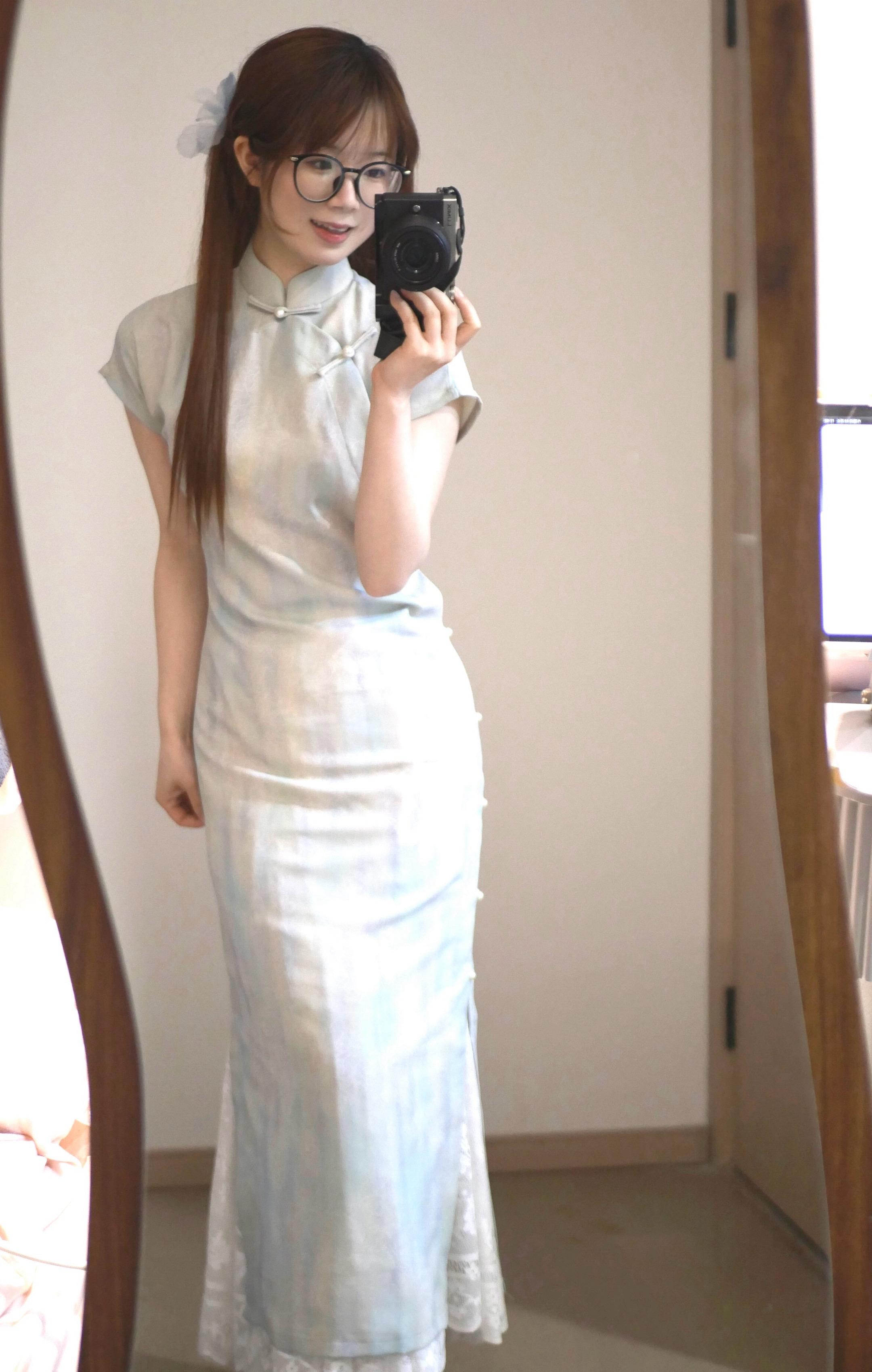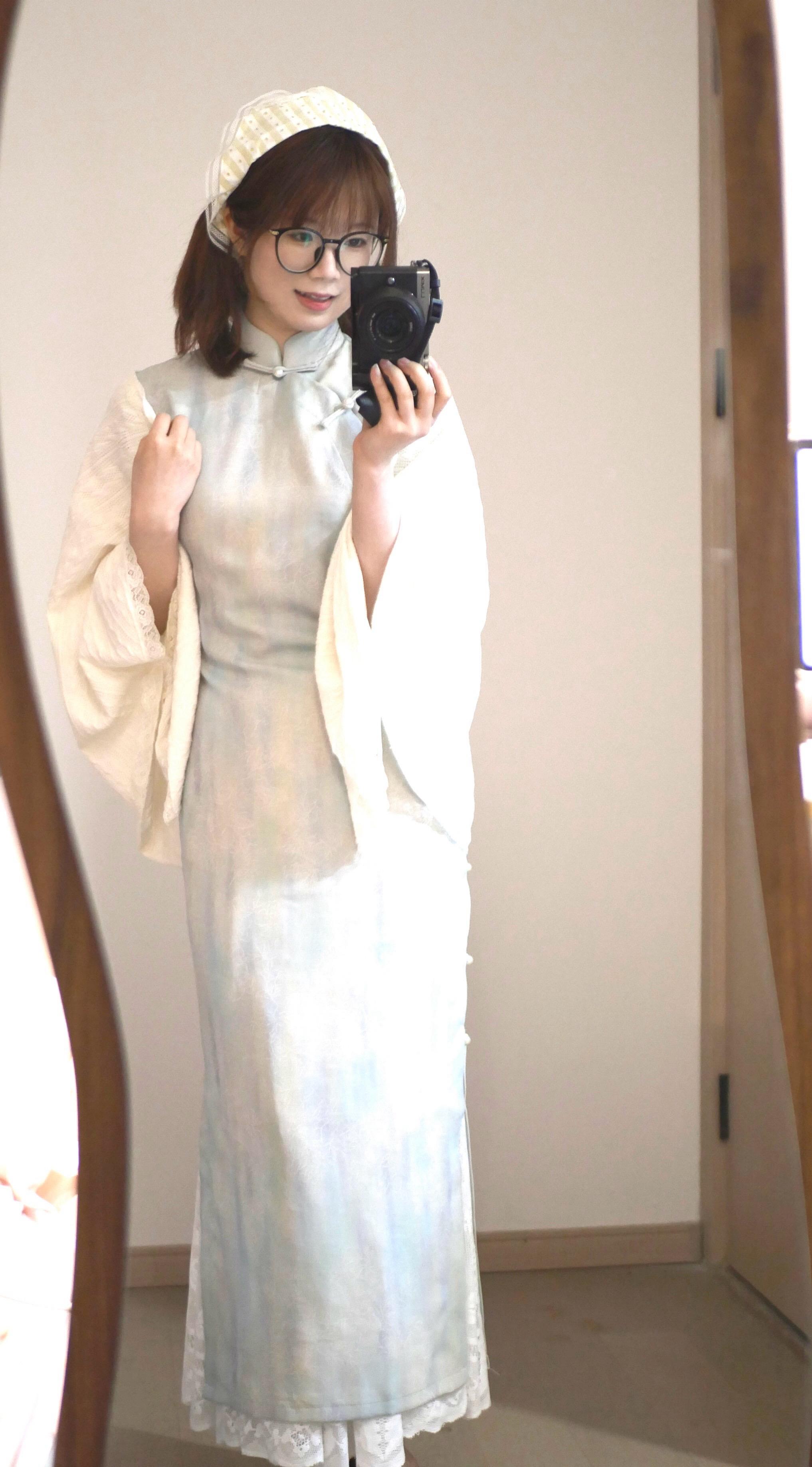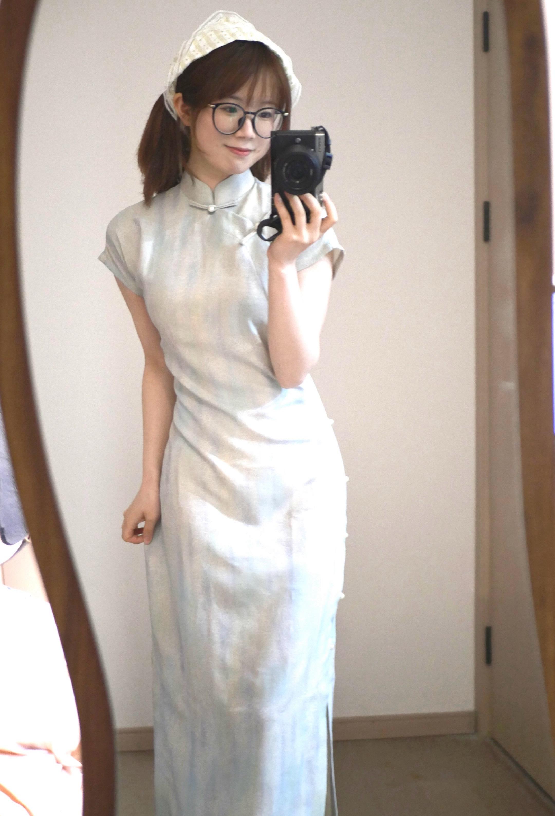 只有睿智的河水知道~~旗袍和三角巾搭配 竟有种复古田园感=⩌⩊⩌=
