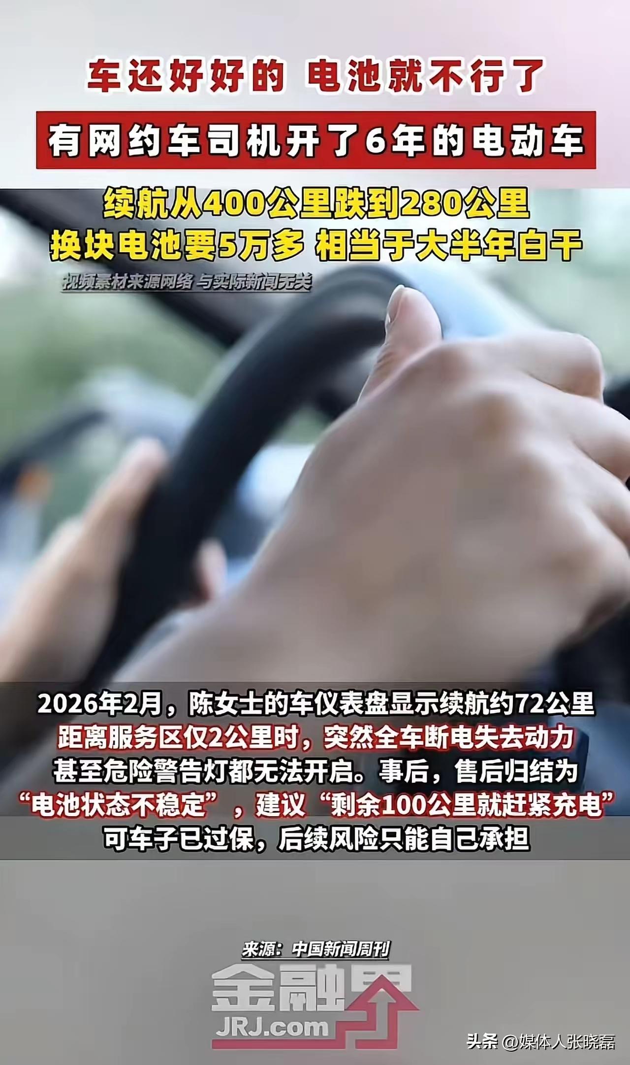 开6年电车,换电池要5万!网约车司机崩溃:我大半年白干了 每天握着方向盘跑网约车,早出晚归跑遍城市街巷,本以为电动车省钱,没想到6年时间,竟把自己跑成了“电池奴隶”。 这位司机师傅的遭遇,戳中了无数电车车主的痛点:车还能开,电池先“报废”。当初花十几万买的车,续航从400公里硬生生跌到280公里,缩水幅度快到三分之一。想继续跑?续航不够根本接不了单;想换电池?4S店张口就要5万多,相当于没日没夜跑大半年,全给电池厂“打工”了。 有人说,电车是“未来出行”,可现实是,电池成了压在车主身上的大山。我们买电车时,没人会提前告诉我们,电池的寿命只有6年;没人提醒我们,换一块电池的钱,能买一辆不错的燃油二手车。更没人说,当初宣传的“环保省钱”,最终可能变成“养车比买车还贵”的噩梦。 我们总觉得科技在进步,电池技术会越来越成熟,可实际呢?高强度使用下的电车,电池衰减来得比想象中快得多。网约车司机每天跑几百公里,电池反复充放电,损耗更是肉眼可见。可这不是司机的错啊,他们凭本事赚钱,凭需求用车,凭什么要为电池技术的短板买单? 更让人寒心的是,换电池的价格没有统一标准,4S店、维修厂漫天要价,车主毫无议价权。想找第三方机构?又担心没有资质,换完电池出问题没人负责。一边是跑网约车养家糊口的压力,一边是天价换电池的绝境,司机们除了崩溃,还能怎么办? 其实,这位司机的遭遇不是个例。越来越多电车车主发现,当初的“购车优势”,慢慢变成了“用车痛点”。燃油车开个十年八年,换个发动机、变速箱也花不了几万块,可电车换个电池,几乎相当于车价的一半。 我们不是反对新能源,而是希望行业能真正解决车主的痛点。电池寿命能不能延长?换电池价格能不能明码标价?有没有合理的回收机制?这些问题,比喊一百句“环保低碳”更重要。 希望这位司机的遭遇能被更多人看到,也希望相关部门、车企能重视起来,别让“天价换电池”,成为压垮电车车主的最后一根稻草。对于电车换电池的乱象,你怎么看?欢迎在评论区聊聊你的想法。