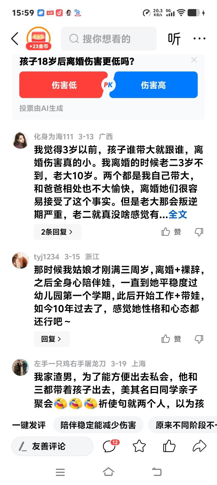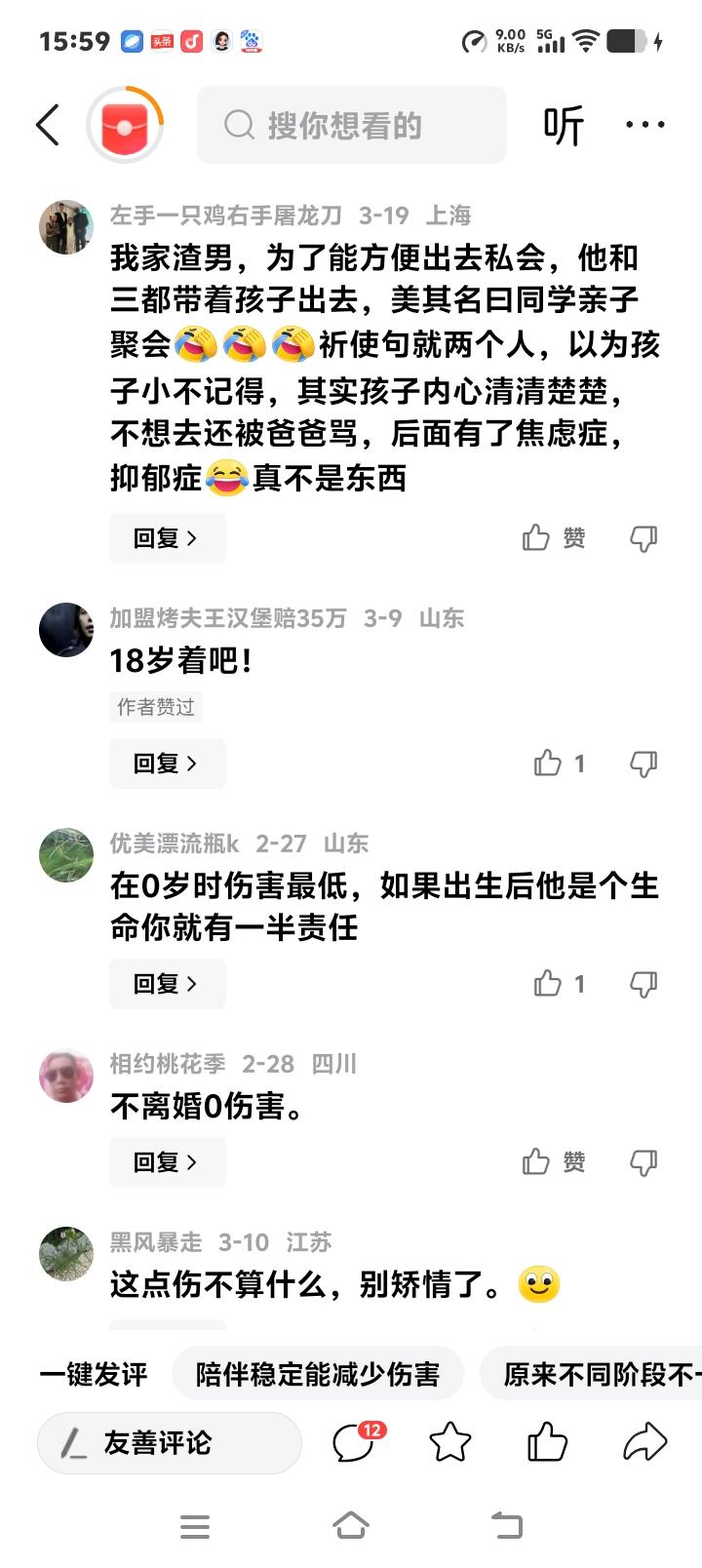 撕开“最佳离婚年龄”的谎言:孩子心上的疤,其实是你亲手刻下的“情绪地雷”与“忠诚绞索” (来源:综合自网络情感心理学案例及儿童发展研究) 当你在搜索引擎里颤抖地打下“孩子几岁离婚伤害最低”时,你是否也在期待一个像数学公式般精确的答案,好让自己内心的负罪感减轻几分?真相是,这世上从不存在一个能让伤害“清零”的魔法年龄。真正在孩子心上划下最深伤口的,往往不是离婚那张纸,而是离婚前后,父母亲手埋下的那些“情绪地雷”和套上的“忠诚绞索”。 你以为孩子小,不懂?那个才三岁、在你们激烈争吵后突然不再说话,只是整夜吮吸手指的孩子,他正在用全身心感知这个世界的崩塌。婴儿期的安全感是地基,频繁的冲突比平静的分开更具摧毁性。他听不懂道理,却能精准捕捉空气中每一丝怨恨与冷漠,然后将其转化为夜惊、黏人和退行性行为。 你相信“黄金窗口期”?确实,3到7岁的孩子记忆看似不深,但这恰恰是最危险的“自责期”。他们会把家庭的破裂,归咎于自己“不够乖”、“不听话”。你一句无心的“都是因为你爸爸/妈妈……”,就可能成为他一生背负的“原罪”。这个阶段,比时机更重要的,是父母能否用稳定的陪伴和绝对不在孩子面前诋毁对方,为他筑起一道护城河。 最残忍的,莫过于让孩子在爱里做选择题。那个被妈妈悄悄问“你跟谁”、被爸爸塞钱让“记下妈妈坏话”的十岁孩子,他内心经历着怎样的撕裂?这不是爱,这是情感勒索。当对父母任何一方的爱都意味着对另一方的“背叛”,孩子的情感系统会选择“关机”——成绩骤降、莫名腹痛、沉默寡言,都是他发出的求救信号。 离婚从来不是单点事件,而是一个漫长过程。决定孩子能否穿越这场风暴的,关键在离婚前三个月到离婚后十八个月这六百多天。你们是选择把婚姻的废墟铺满孩子的整个生活空间,还是合力为他搭建一个虽不完整但情绪稳定的“安全岛”?你们是让他成为传递仇恨的“传声筒”,还是明确告诉他“爸爸妈妈分开了,但爱你从未改变”? 比纠结年龄更紧迫的,是立刻停止互相攻击,签署一份关于孩子心理安全的“父母协议”。约定不在孩子面前贬损对方,不让孩子承担成人的恩怨,保障另一方稳定探视的权利。让孩子看到,即使你们不再是夫妻,依然是能为了他和平共处的父母。 最终你会发现,伤孩子最深的,从来不是家庭结构的改变,而是持续不断的冲突、情感上的缺位,以及那份被当作筹码或出气筒的屈辱感。孩子不需要一个虚伪的“完整”家庭,他需要的是真实、稳定、充满尊重的爱。这份爱,与婚姻形式无关,只与父母的智慧和担当有关。 离婚育儿 情感创伤