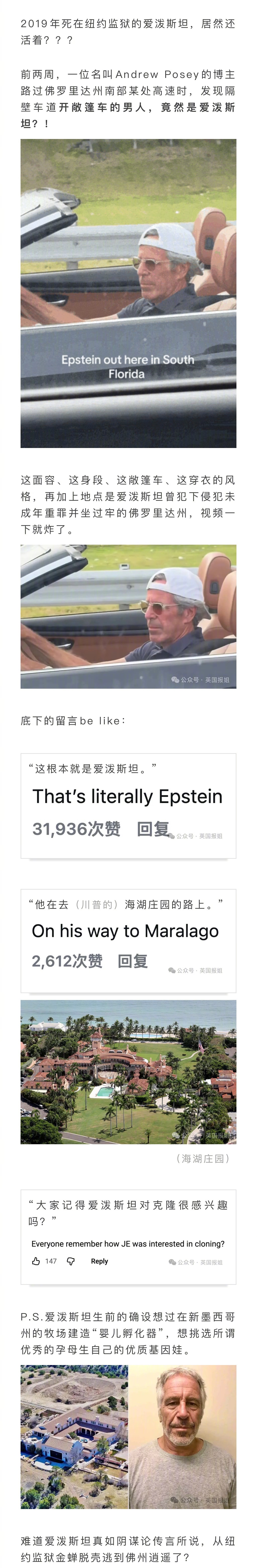 前几天,有美国网友在佛州高速上拍到一位开着敞篷车、长相酷似爱泼斯坦的男子。视频引发热议,不少人质疑:太像了,他居然还活着???