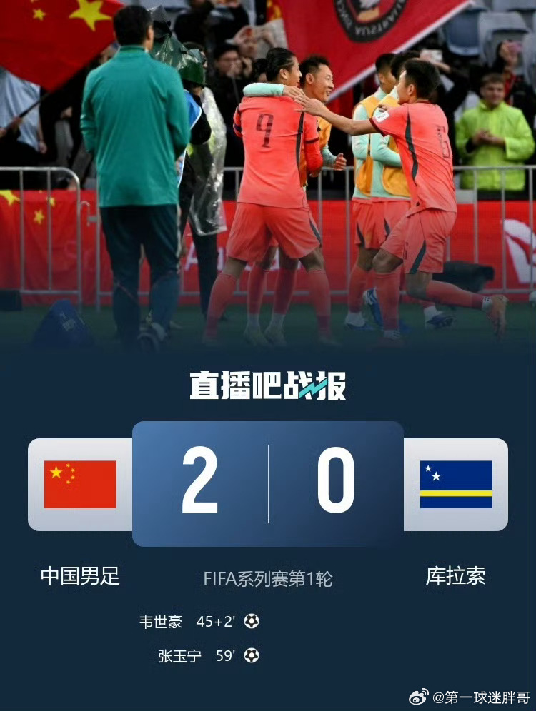 中国足球国家队国足2比0库拉索邵佳一国足首秀赢球 FIFA系列赛,中国男足2-0战胜库拉索,邵佳一执教国足首秀迎来开门红!张玉宁传射建功,韦世豪凌空斩破门;3月31日,中国男足将对阵喀麦隆。国足vs库拉索