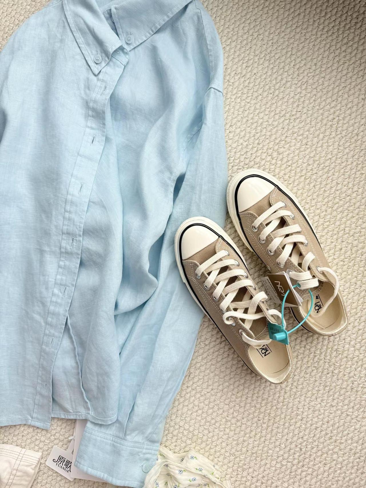 原歌家亚麻衬衫,这颜色太有春天的气息啦原歌时装 早春穿搭 日常穿搭 亚麻衬衫