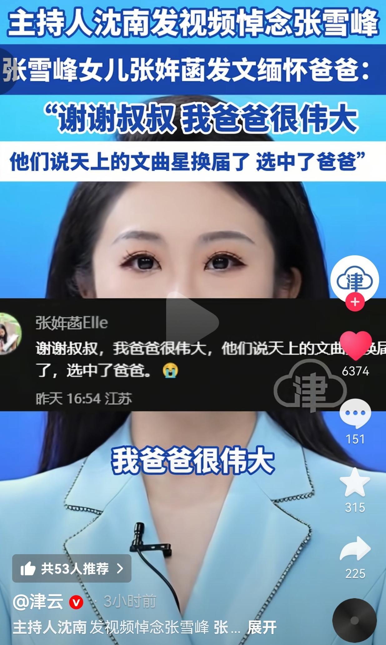 破防了!张雪峰女儿一句话,全网瞬间泪崩! 谁能想到,那个在直播间里为万千家庭指点迷津的张雪峰,竟然以这样的方式,永远留在了春天里。 3月26日,主持人沈南发布悼念视频,瞬间引爆全网。紧接着,张雪峰的女儿张姩菡在社交平台写下:“谢谢叔叔,我爸爸很伟大,他们说天上的文曲星换届了,选中了爸爸。” 短短一句话,像一把钝刀,割在每一个看过他视频的人心上。 还记得他在镜头前红着眼眶说:“我女儿的电话我得接啊”,还记得他拍着胸脯对女儿承诺:“你长大了以后,你所有的决定我都不会干涉,我作为你的爸爸,我能做到的事情,就是做好你的坚强后盾。” 那个把“兜底”两个字刻进骨子里的男人,那个为了让普通孩子少走弯路熬白了头的父亲,那个在直播间里跟家长们拍桌子、急得跳脚的“刺头”,再也不能接女儿的电话,再也不能做她的后盾了。 网友看到后评论说:“泪目了!我家孩子明年高考,天天听张雪峰的课,他就像个邻家大哥,急得跟你喊“别选这个专业!坑死你!”,现在再也听不到了😭 也有的网友说:“文曲星换届了…这孩子太懂事了,懂事得让人心疼。张老师,你放心,你的女儿会带着你的爱,好好长大。” 还有的网友说:“有些人活着,他已经死了;有些人死了,他还活着。张雪峰不是什么完美圣人,但他是真的为普通人说话,为底层孩子铺路,这就够了!” 也有的网友说:“我爸爸很伟大”,这是我今年听过最戳心的话。张雪峰,你听到了吗?你在你女儿心里,是永远的英雄。” 我真的意难平:为什么好人总走得这么早?为什么总是让那些真心为别人好的人,走得这么早? 张雪峰不是什么高高在上的专家,他就是个接地气的东北老爷们,他知道普通家庭的孩子想改变命运有多难,所以他拼了命地在直播间里喊,在视频里骂,就怕我们这些没背景、没资源的人,再掉进坑里。 有人说他功利,说他贩卖焦虑,可你去看看那些被他劝退学金融、学土木的孩子,现在过得有多庆幸;你去听听那些家长说“要是早听张老师的,我家孩子就不会走弯路了”,你就知道,他的“功利”,全是为了我们这些普通人。 他不是文曲星,他是我们这些普通人的“点灯人”。他用自己的嗓门,照亮了无数家庭的前路;他用自己的倔强,对抗着这个时代的信息差。 现在,灯灭了,但光还在。他的女儿会带着他的爱长大,他的理念会被更多人记住,他为普通人发声的勇气,会永远留在我们心里。 最后,我想说的是:文曲星可以换届,但为普通人点灯的人,永远不会被遗忘。张雪峰,你放心走吧,你的女儿,我们替你疼;你的光,我们替你传下去!