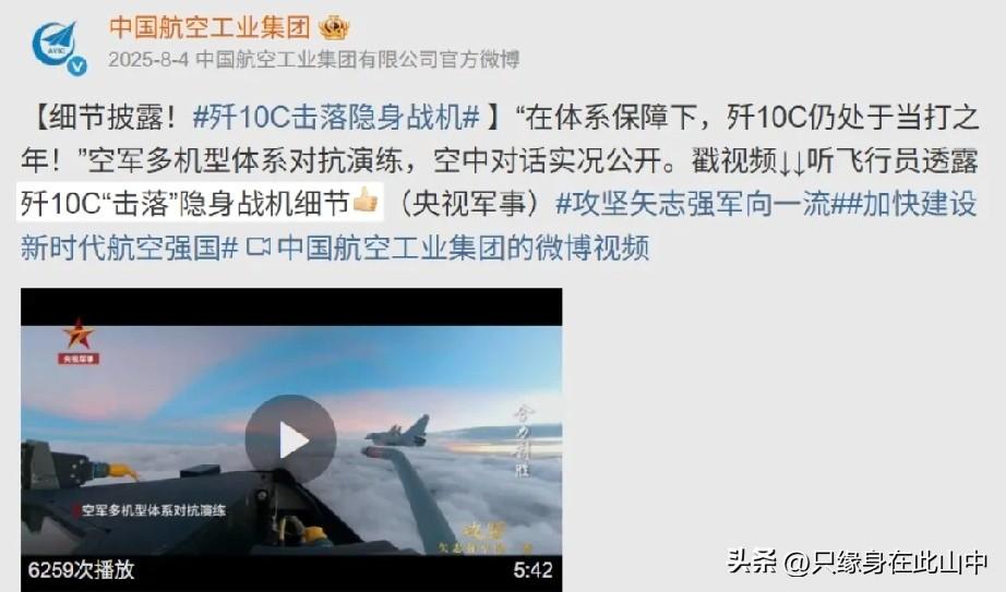 歼10C的战绩又加一次 至于机型,不难猜,应该就是歼10C敲掉了歼20。 体系作战,任何一环都可以成为观测者,任何一环都可以成为打手,这就是真正可怕的地方,你永远不知道是谁的导弹最终打了你。 老机型配上体系bug,一样很犀利..