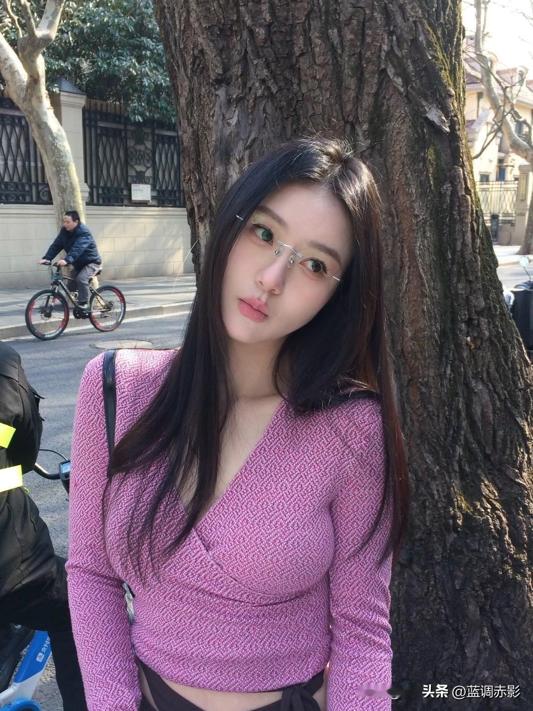 温柔粉毛衣,甜美少女心,街拍日常穿搭