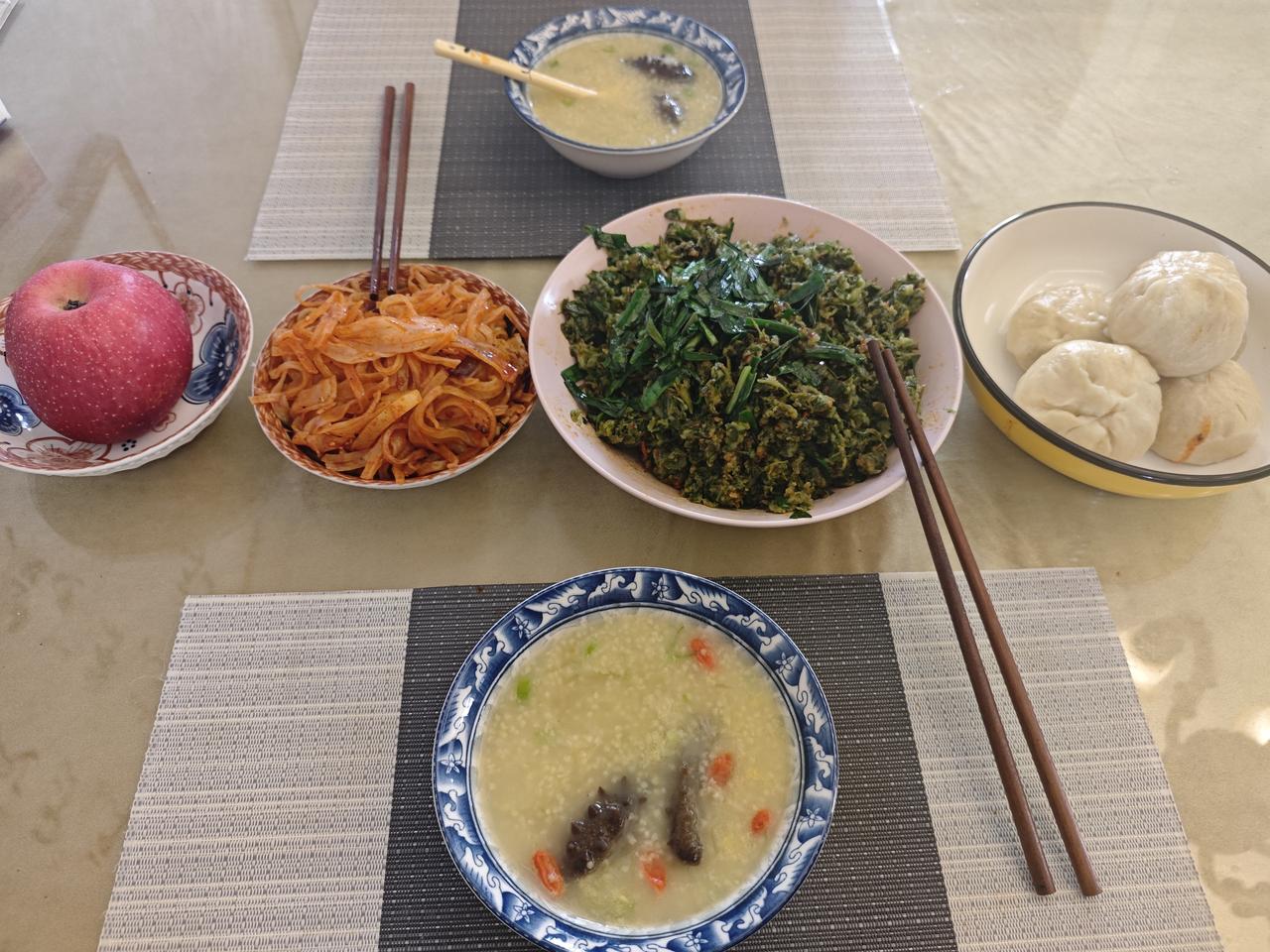 幸福的早餐 前几天,老婆说咱们也要提高一下生活的品质,便在网上买了一盒青岛的海参。第一次买,就选择小海参,个头不大,一盒装了40只,纯净水一次泡发20只,时间是三天,到昨天应该泡发完毕,按照网上提示的,清水煮了一个半小时,捞出来放冰箱备用。 早上锻炼完身体,老婆喊我吃饭,来到餐桌前,居然是小米海参粥,好诱人啊,我说感觉和大饭店的差不多哈! 端起碗,喝了一口,小米的纯香里透着一股海参味。老婆还谦虚地说“没有大饭店的那种香,下一次加一些鸡汤估计就能好一点。”我说这个已经很不错了,咱们不能要求太高啊! 说到小米海参粥,以前那可都是大饭店里按例份卖的高档餐啊,一小碗都得百十块钱呢,现今我们都可以在家中享受了,你说说,这算不算幸福的早餐?
