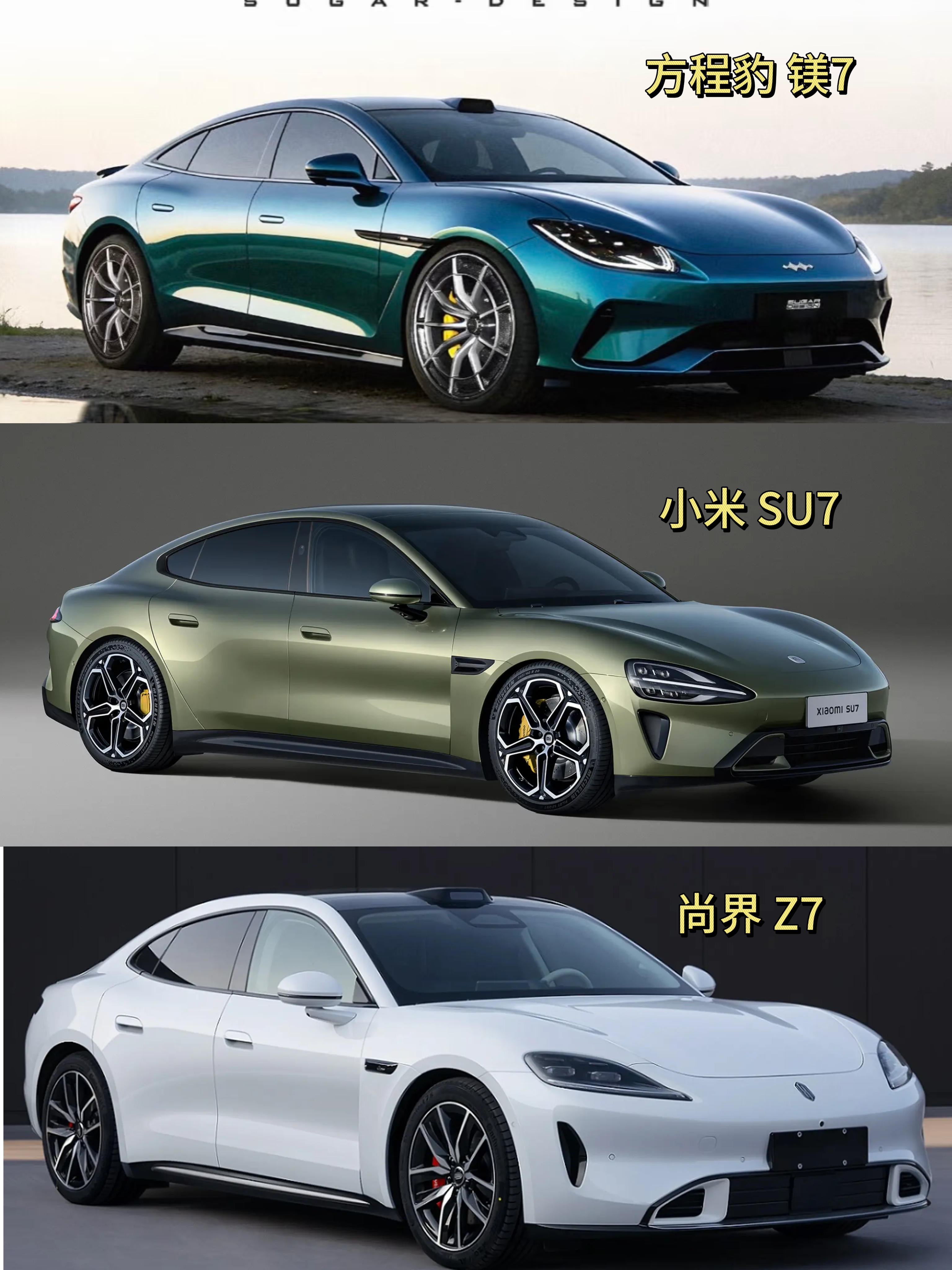 可能是看小米su7这样的前脸太多次了吧,尚界z7和su7太像了,导致说虽然是好看的,但没啥新鲜感。 方程豹这边我是觉得还不错,就是希望控制好车高,不要太臃肿,后尾灯相比su7和z7以及一众新能源车型来说,明显方程豹的更有辨识度和设计感,既漂亮又吸睛,我是很喜欢的。 这三者的话,su7估计依旧是操控最好的那个,z7则是华为鸿蒙座舱+ADS辅助驾驶加持,而方程豹则是闪充+云辇a+二代刀片电池(用料配置很顶,比亚迪三电+方程豹设计=卖爆) 没准方程豹这款轿跑能复刻钛7的成功。 你觉得呢?小米还能稳坐老大宝座吗?谁老二谁老三?