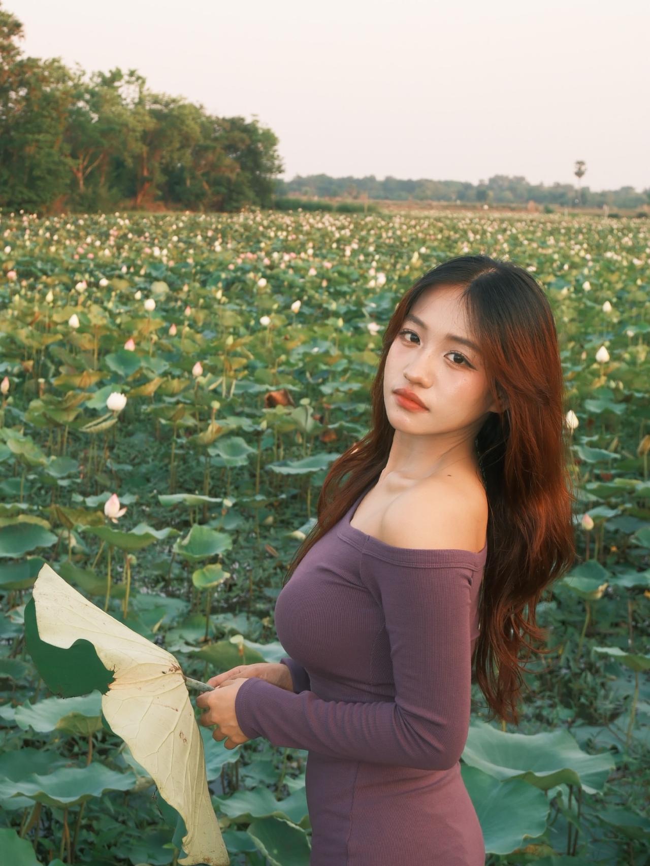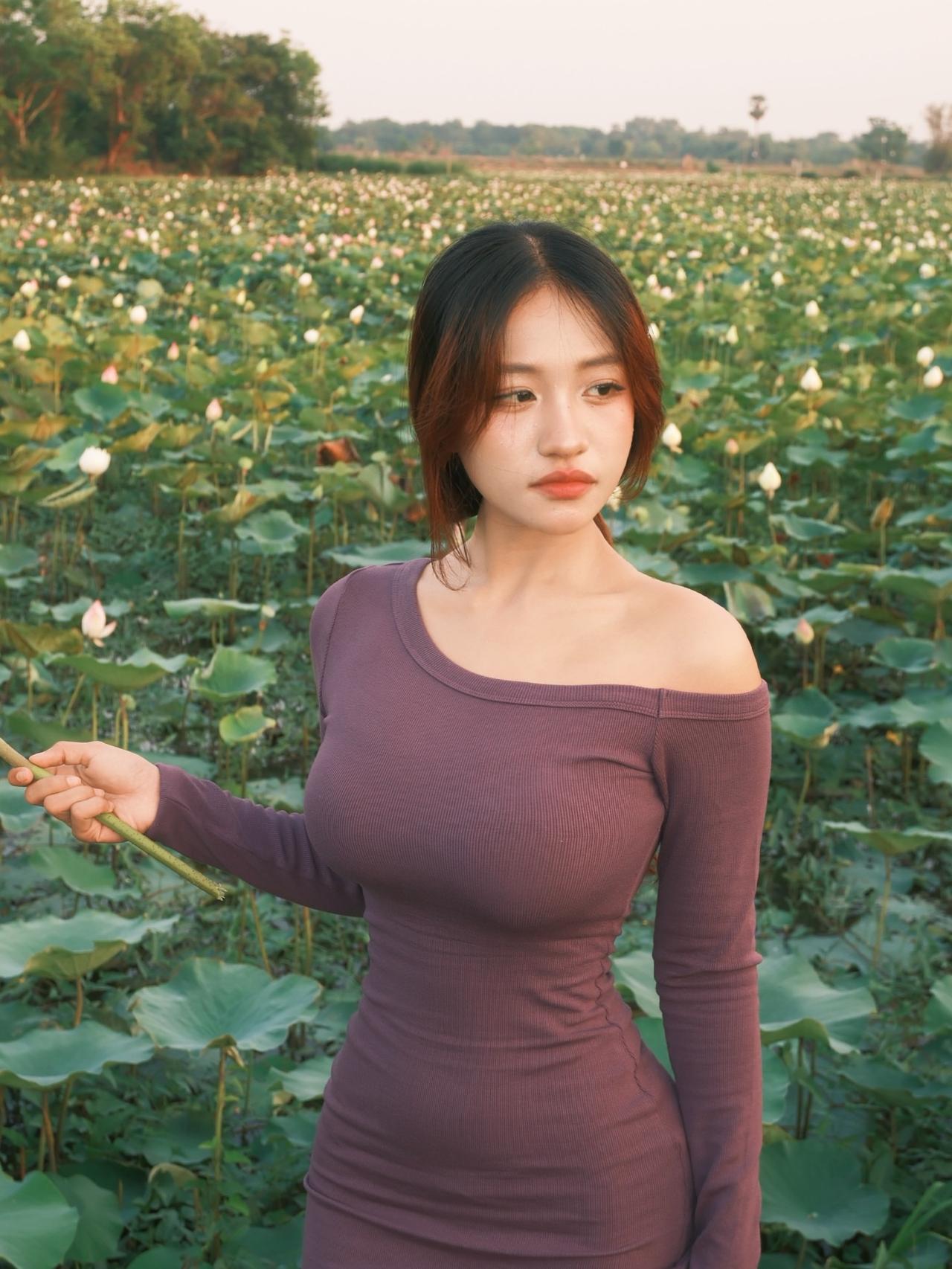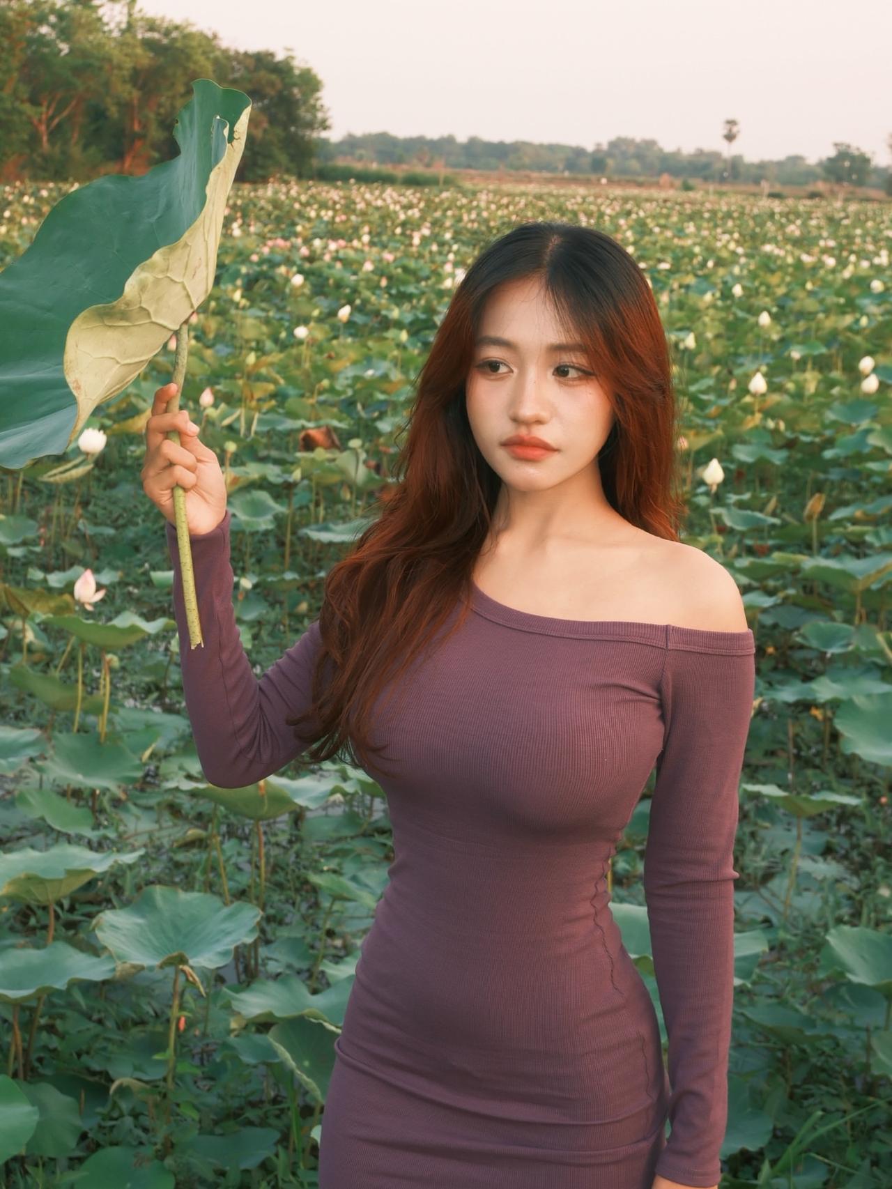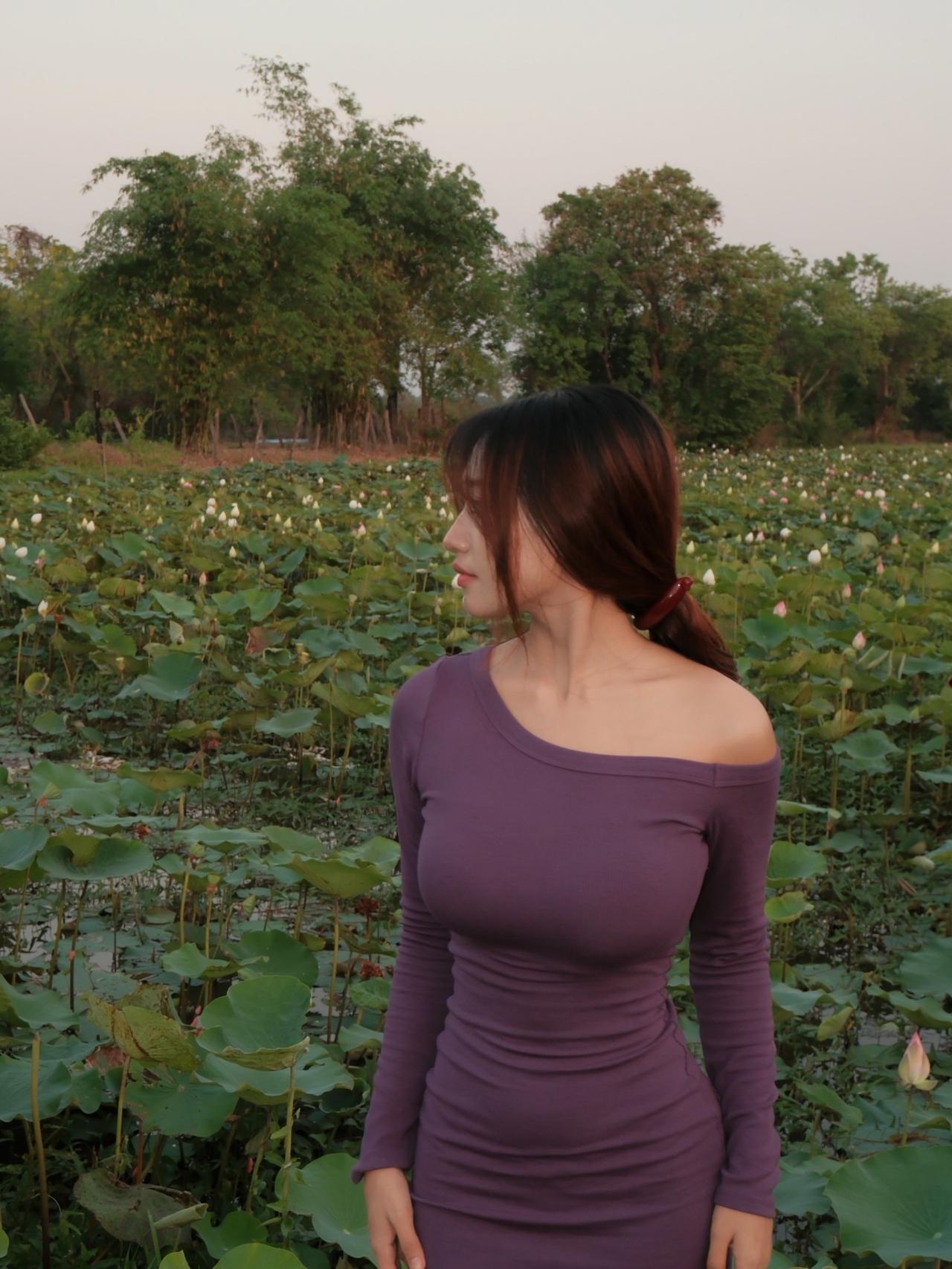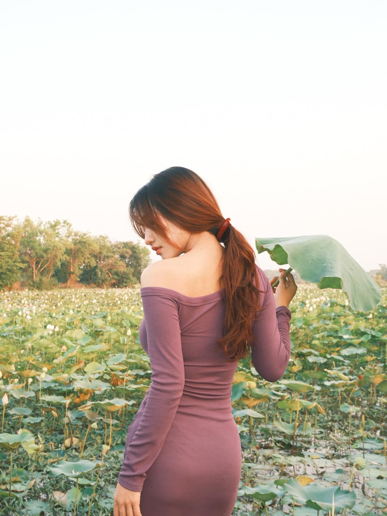 在荷塘中漫步,感受自然的宁静与美好。好看又舒适的穿搭 如何穿搭会具有少女软妹感
