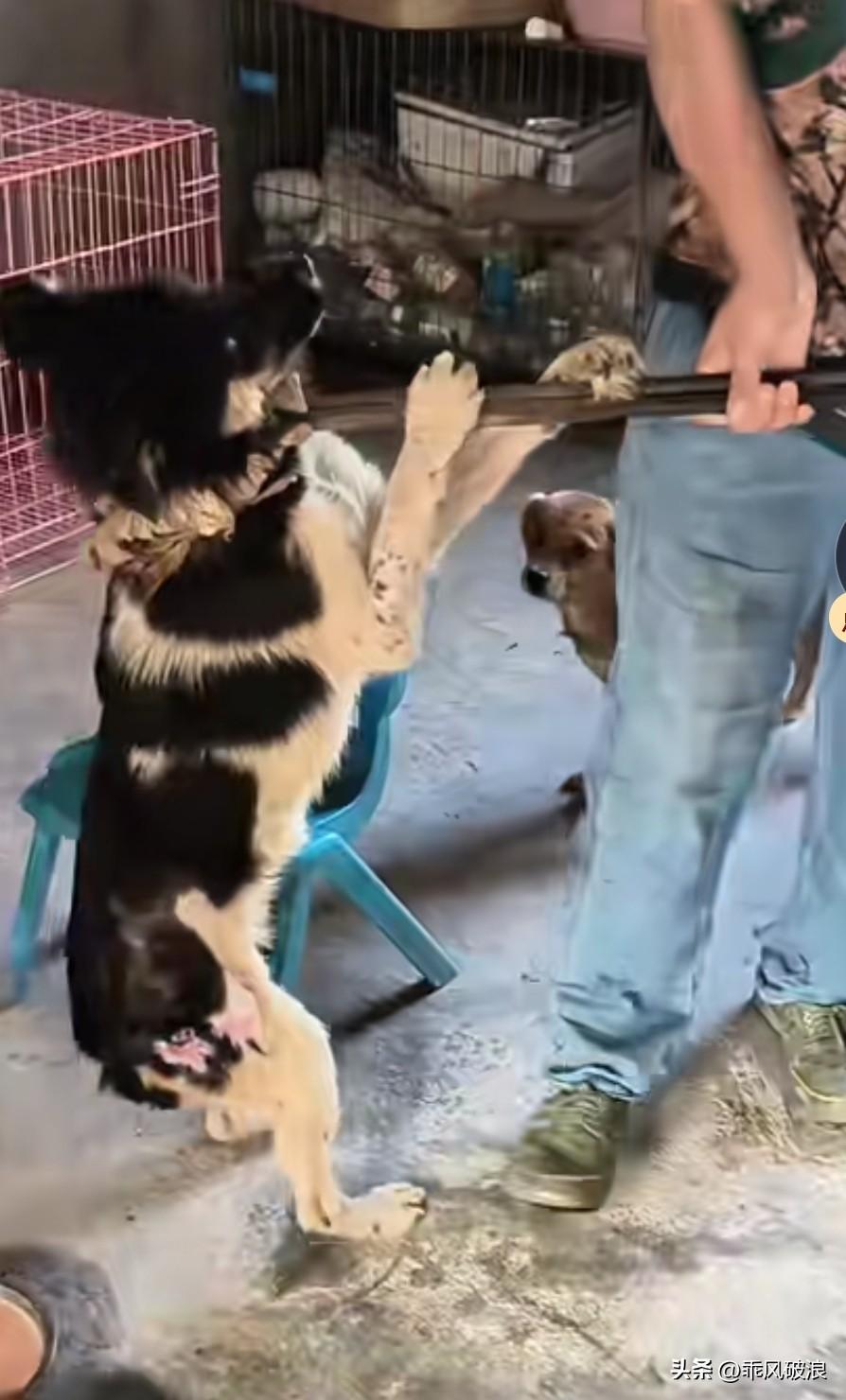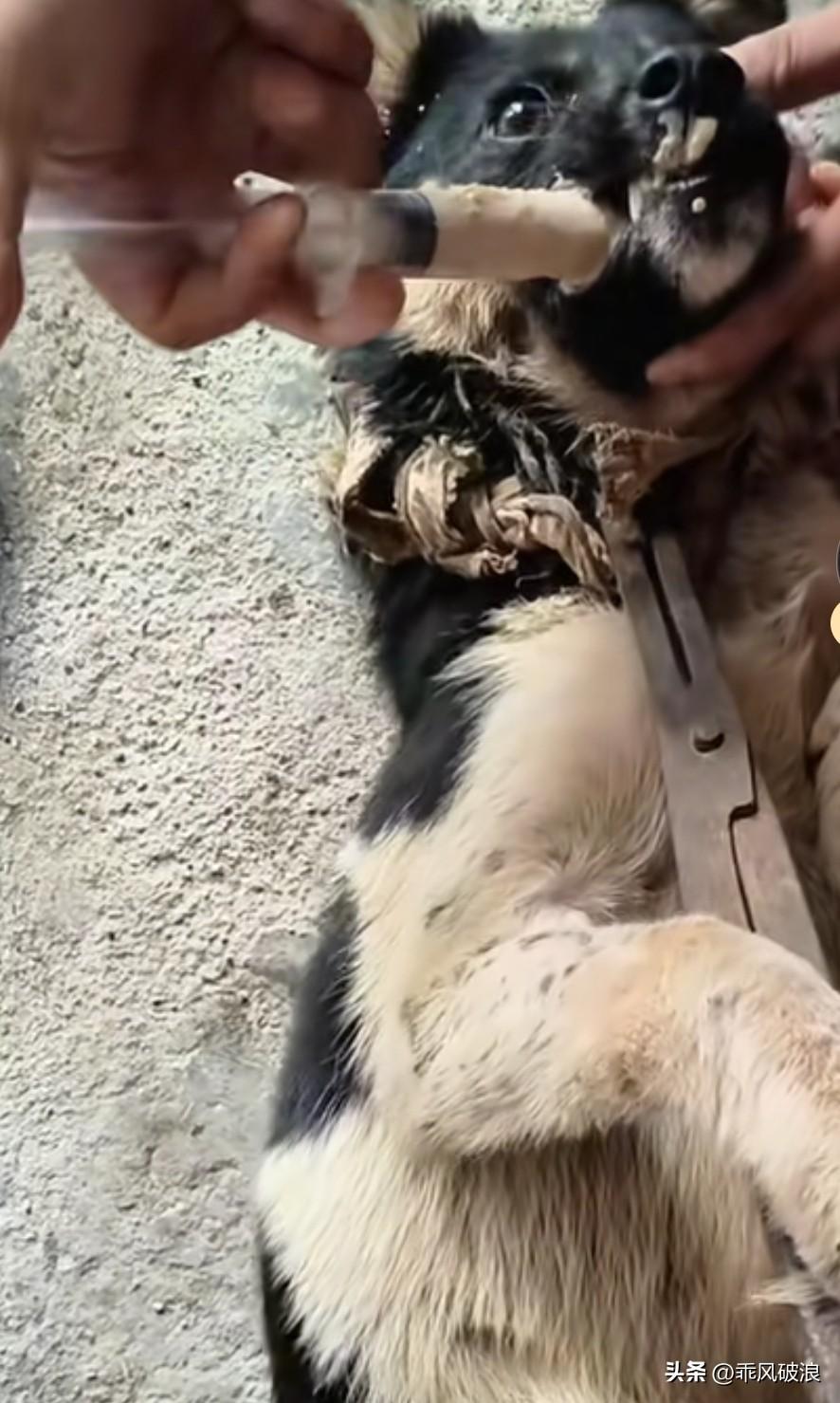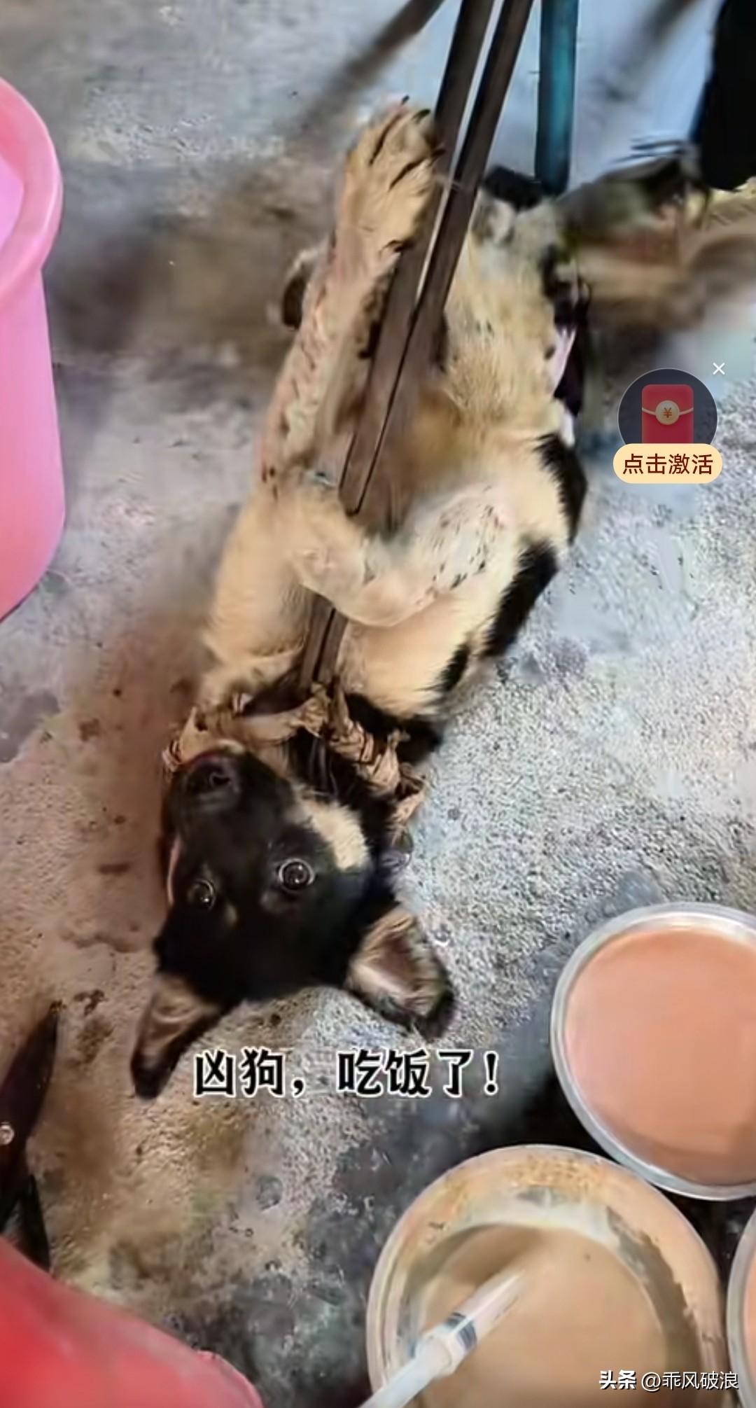 这只狗狗并非遭受主人虐待,而是被强制喂食、吃药。它是狗肉厂里500只狗狗爆发瘟疫后仅存120只中的一只烈性犬。它不仅躲过了瘟疫,还幸运地逃脱了屠夫的杀害。被救出后,人们强制给它打针、吃药,历经90天,才将它从瘟疫中救活。 爆发瘟疫的狗狗 强制治疗