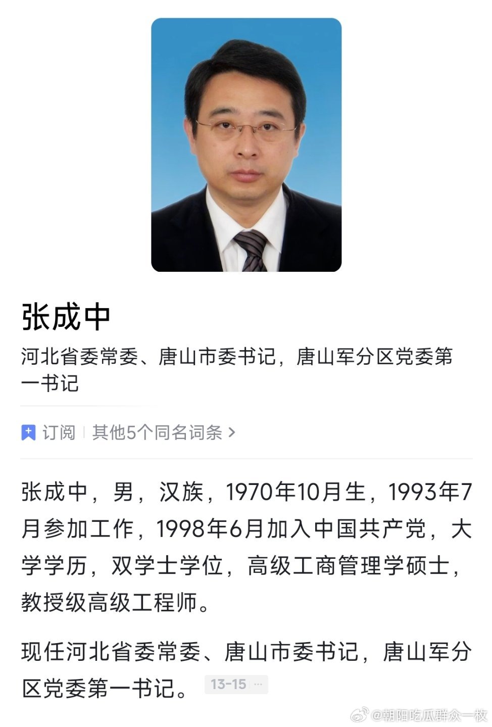 张成中任应急管理部党委书记,曾任河北省委常委、唐山市委书记。