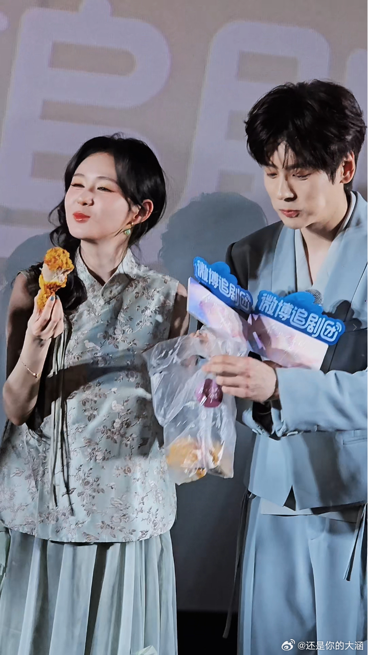 郑合惠子喂魏哲鸣吃鸡腿 刚刷到这段直接在宿舍尖叫!室友以为我疯了,可谁看了魏哲鸣“啊呜”咬鸡腿的样子不迷糊啊!郑合惠子递炸鸡时笑到嘴角上扬,俩人的互动自然又亲昵,完全不像演的!