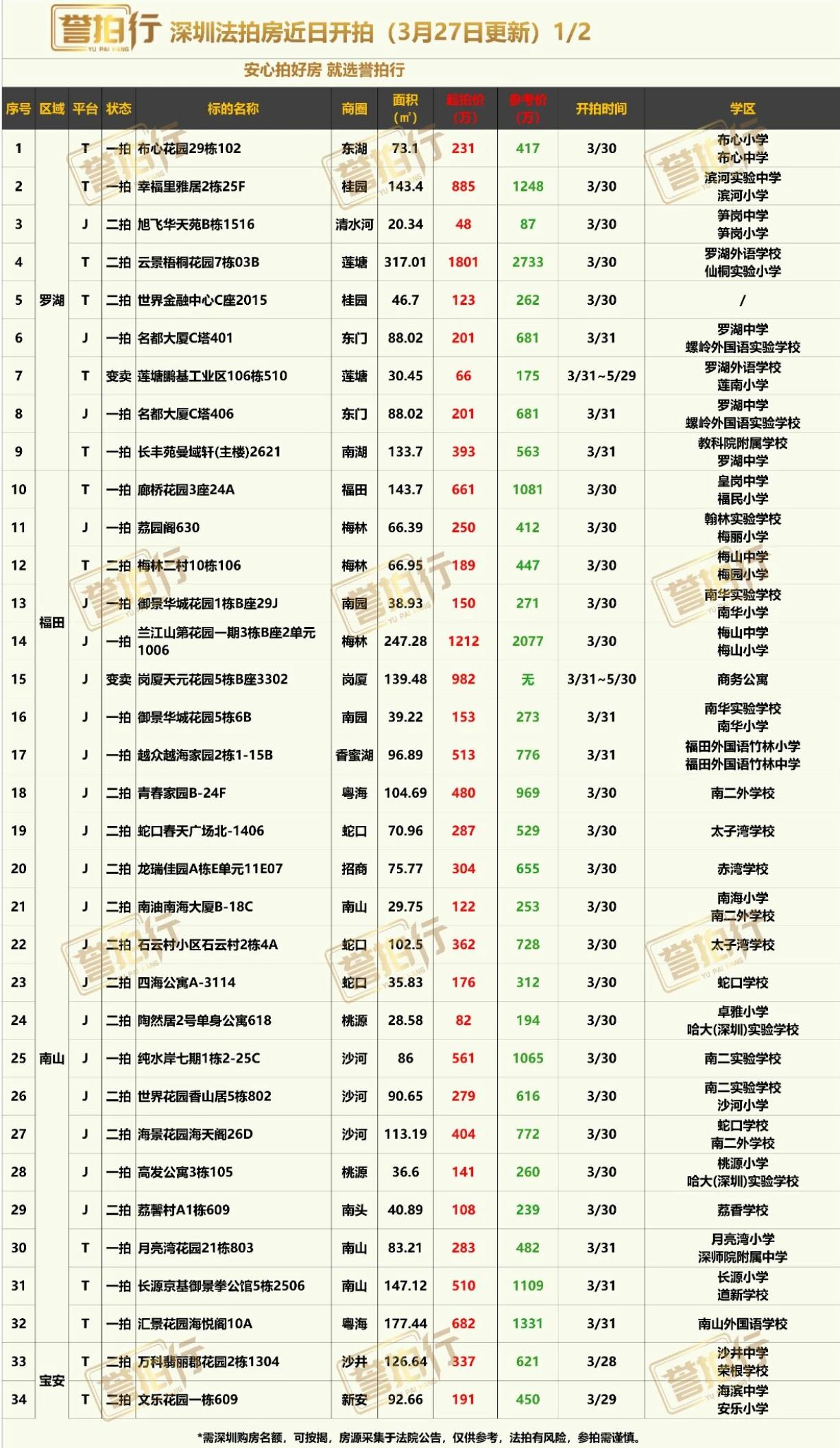 深圳法拍房:近期开拍,好房好多~ 1、幸福里雅居,单价只要6.2万,好房 2、云景梧桐花园,单价只要5.7万,好房 3、廊桥花园,口岸旁边,单价4.6万,好房 4、兰江山第花园,环境很好,单价只要4.9万,6折拍卖,很不错 5、越众越海家园,单价5.3万,很不错 6、石云村,单价3.5万,很不错
