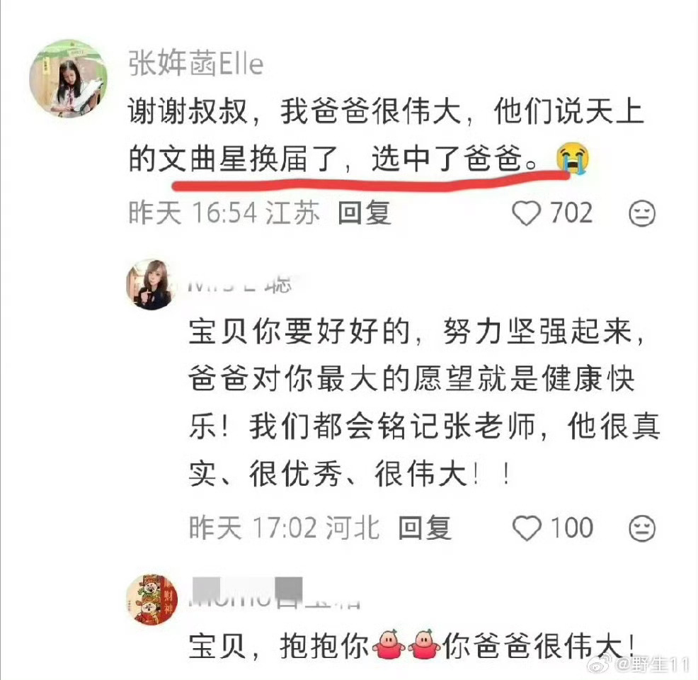 张雪峰女儿缅怀爸爸看到这个话题,真的好难过。我家也是女儿,都不敢想爸爸不在了,女儿得多无助。大家都照顾好自己哈~