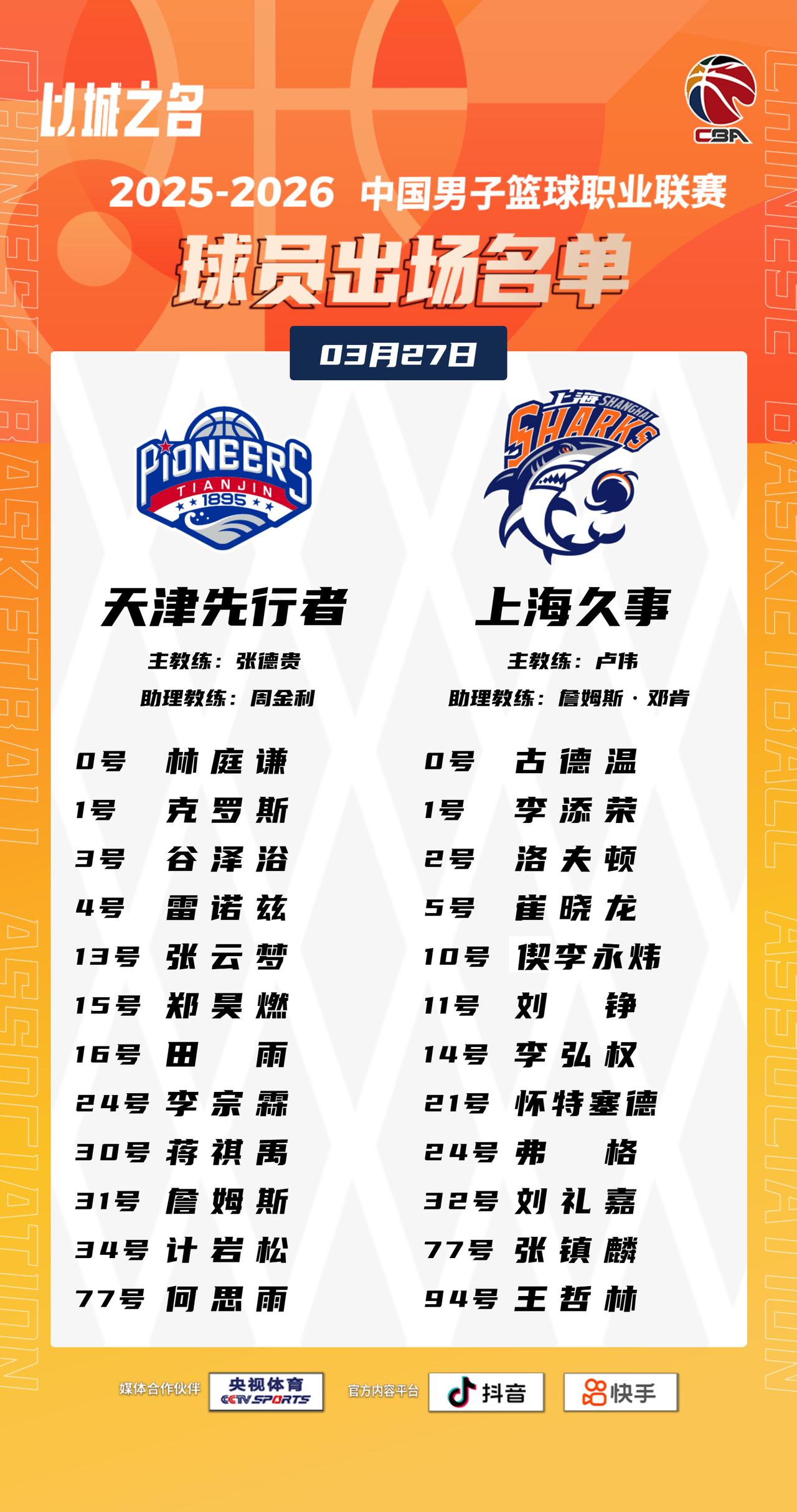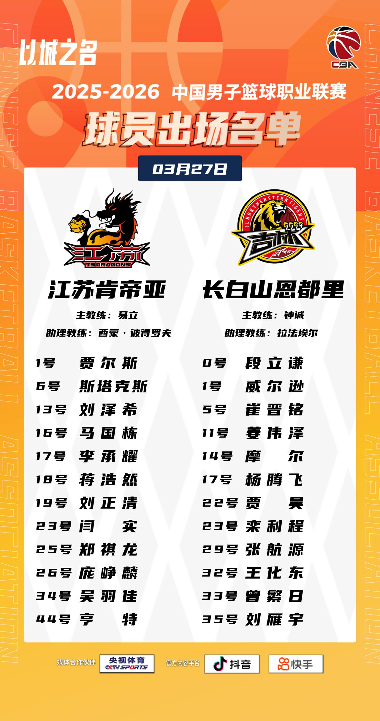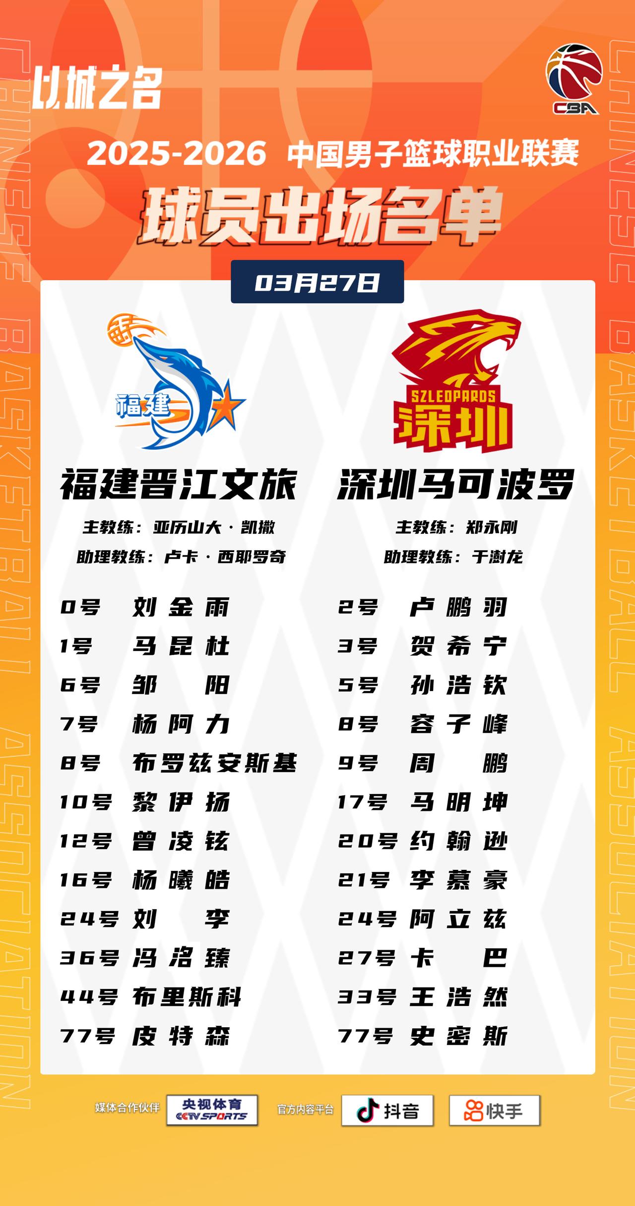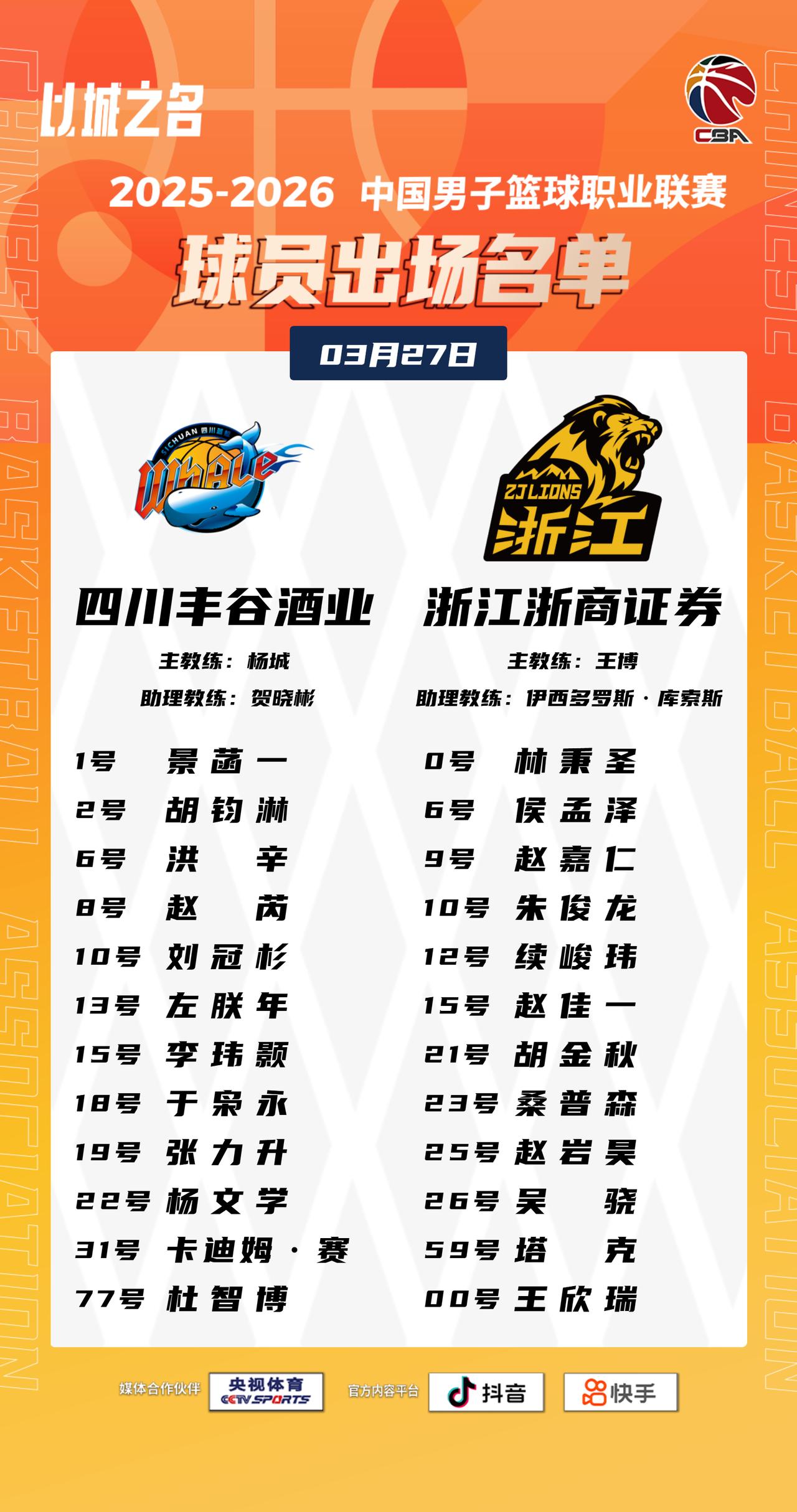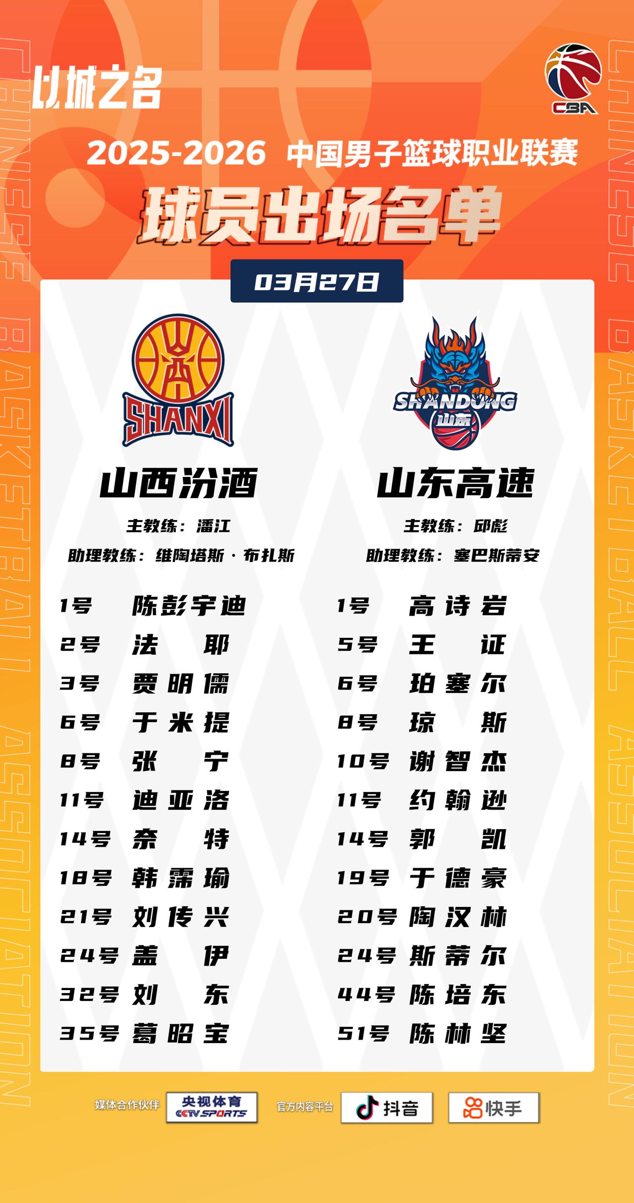 【大名单出炉】2025-2026赛季CBA联赛常规赛第三十一轮今晚开打,6场比赛将在19:35同时跳球。敬请期待!以城之名