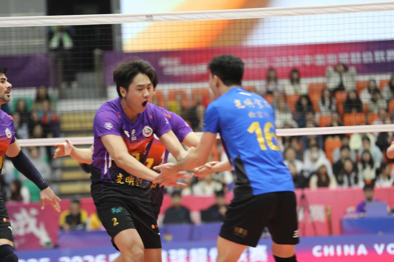 【2025~2026中国男排超级联赛】【第23轮】【第三阶段】【三、四名决赛Ⅰ】【第A91场】【青岛兴轮呦呦男排VS上海光明男排】现场比赛照,最终上海光明男排3比2青岛兴轮呦呦男排。比赛日期:2026年03月26日,比赛地点:山东省青岛市青岛大学体育馆。
