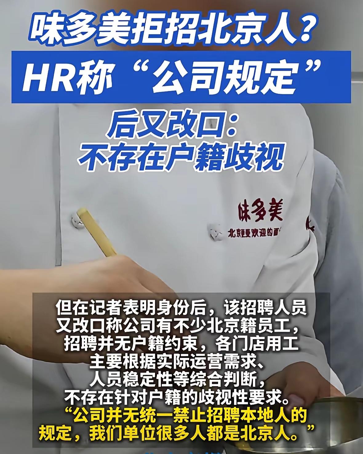 味多美不招北京本地人怎么了?有什么问题吗?潜台词是除了北京的都招,仅仅不招北京人而已。 北京好多单位是只招北京人,潜台词是除了北京的都不招,伤害面不是更大吗?怎么也没人出来指责呢?那指责的人是不是太双标了?