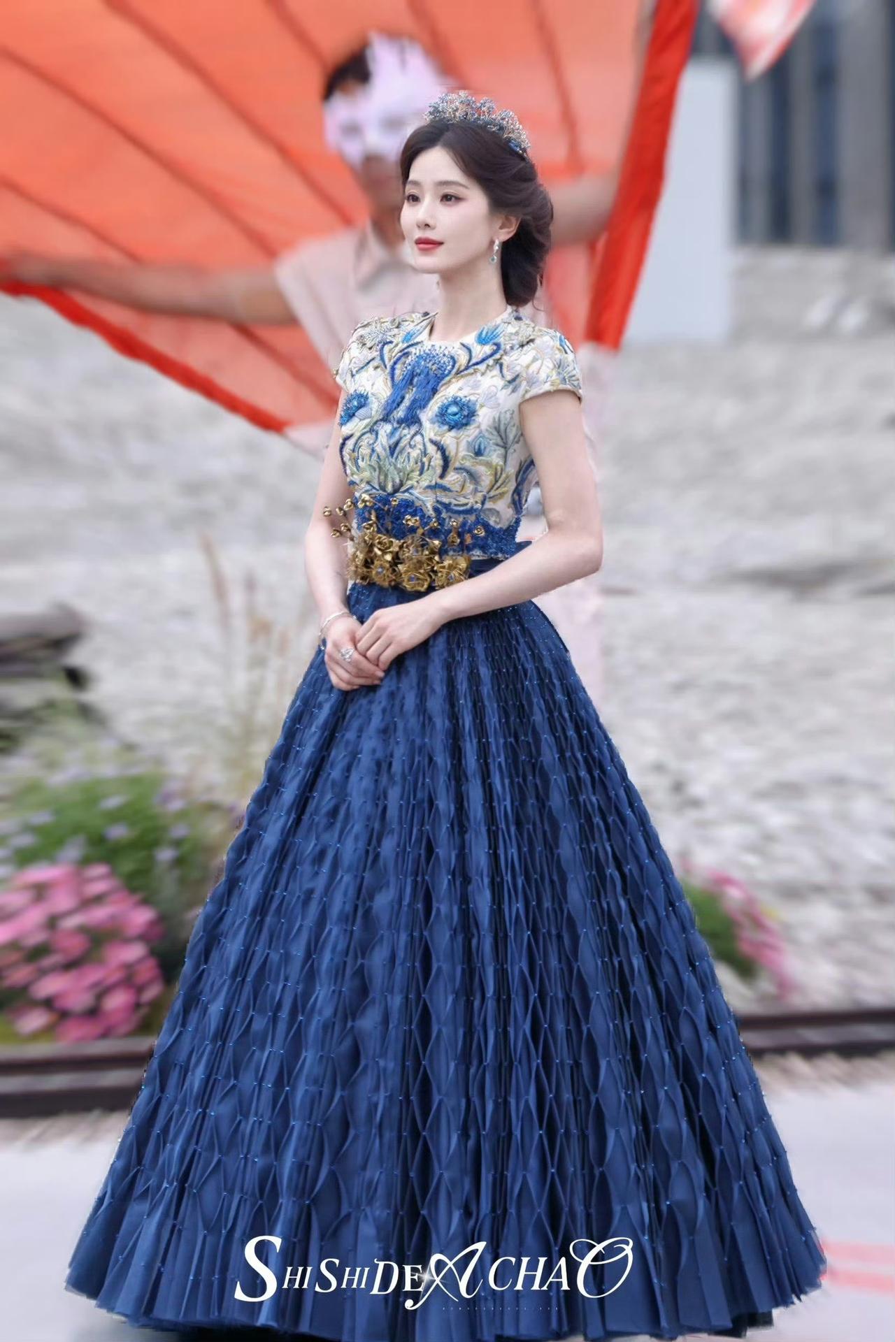 🏮 刘诗诗把东方美学穿成了高定天花板!非遗蓝金礼服太绝了 当清冷骨相遇上非遗高定,刘诗诗一出场就赢麻了!✨ 这套REDGALA开场造型,以米白为底,用蓝金苏绣勾勒出东方花鸟纹样,层层叠叠的宝蓝裙摆如深海翻涌,再配上碎钻皇冠,把古典雅致与现代华丽揉得恰到好处。 眉眼含霜,裙摆生风,她往那一站,就是活脱脱从画里走出来的东方美人,难怪网友直呼:这波直接梦回龙葵!