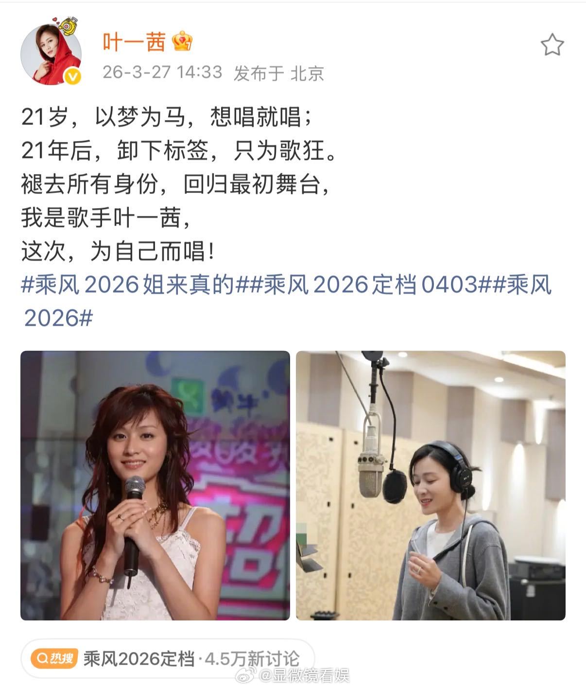 李宇春鼓励叶一茜想唱就唱 跨越21年的友情太好哭了。21年从超女到乘风,听李宇春