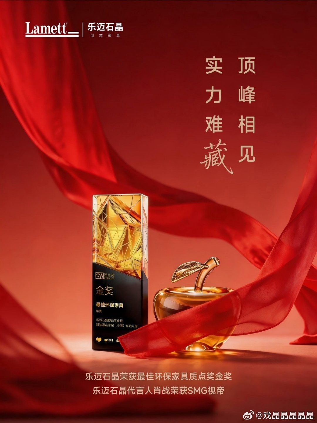 乐迈石晶荣获最佳环保家具质点奖金奖,乐迈石晶代言人肖战荣获 SMG 视帝!对品牌