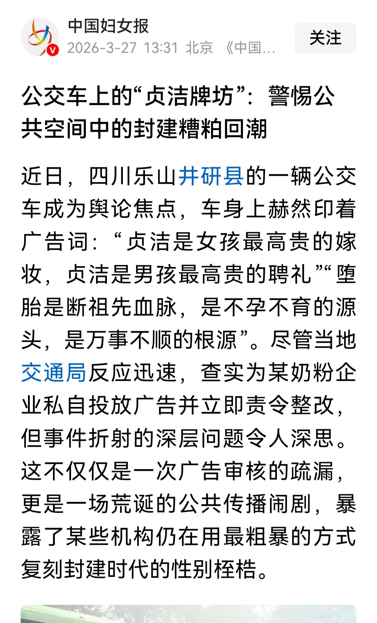 有的人才是断章取义,居心叵测! 不放完整的,就是在故意挑动是非! 支持中国妇女报!