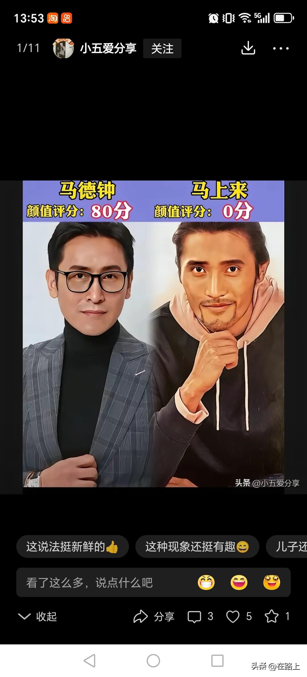 盘点11位明星儿子,颜值全被老爸碾压,网友:这届儿子不行啊! 说实话看完这组对比图,我都怀疑这些明星是不是抱错了孩子。吕良伟70分,儿子38分;张国立94分,儿子45分;钟镇涛80分,儿子23分……这分数是一个比一个离谱。不过也有明白人说:爹年轻时候都是靠颜值吃饭的,儿子又不用靠脸,有才华就行!你们觉得颜值这东西,遗传到底靠不靠谱?