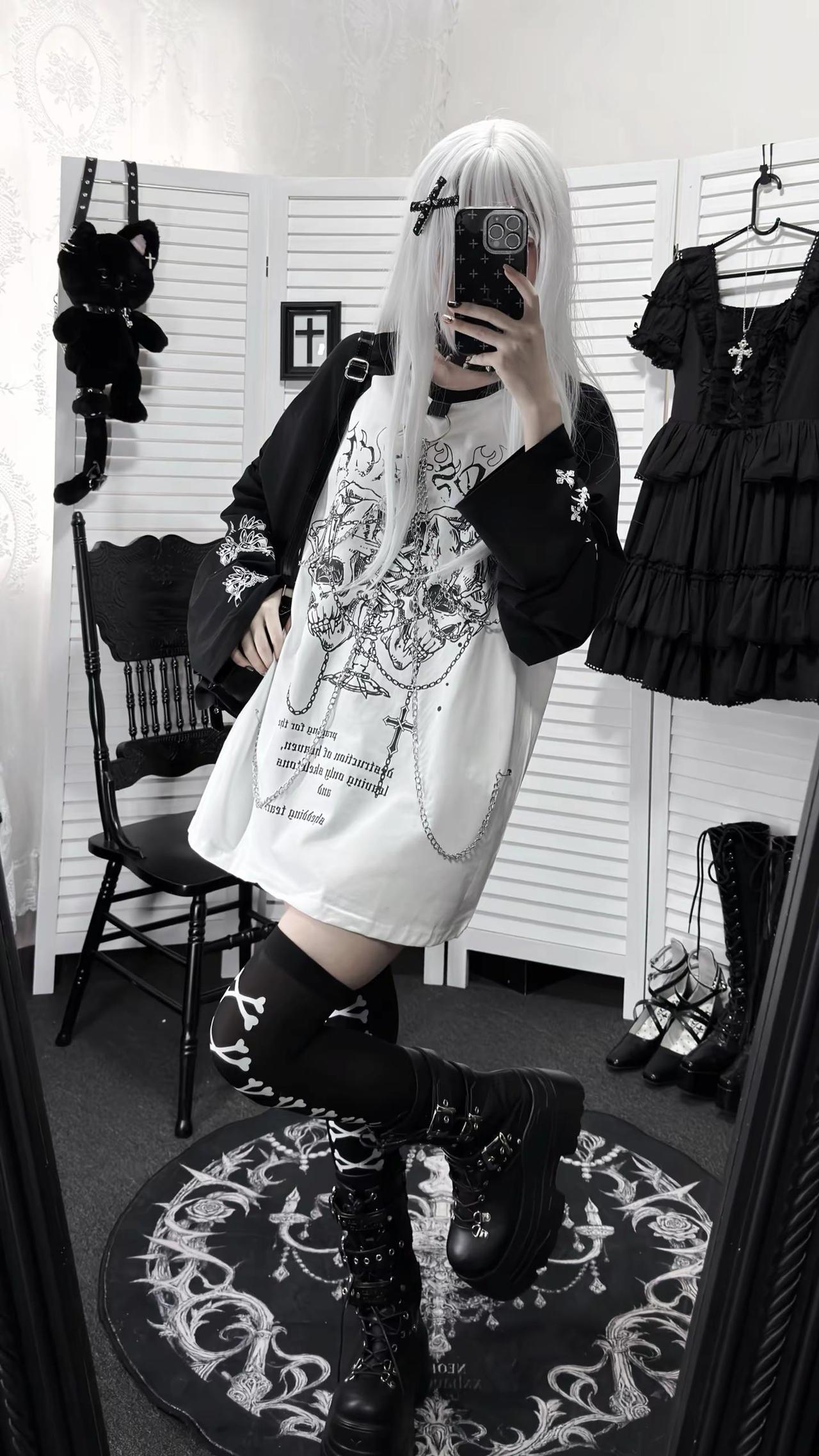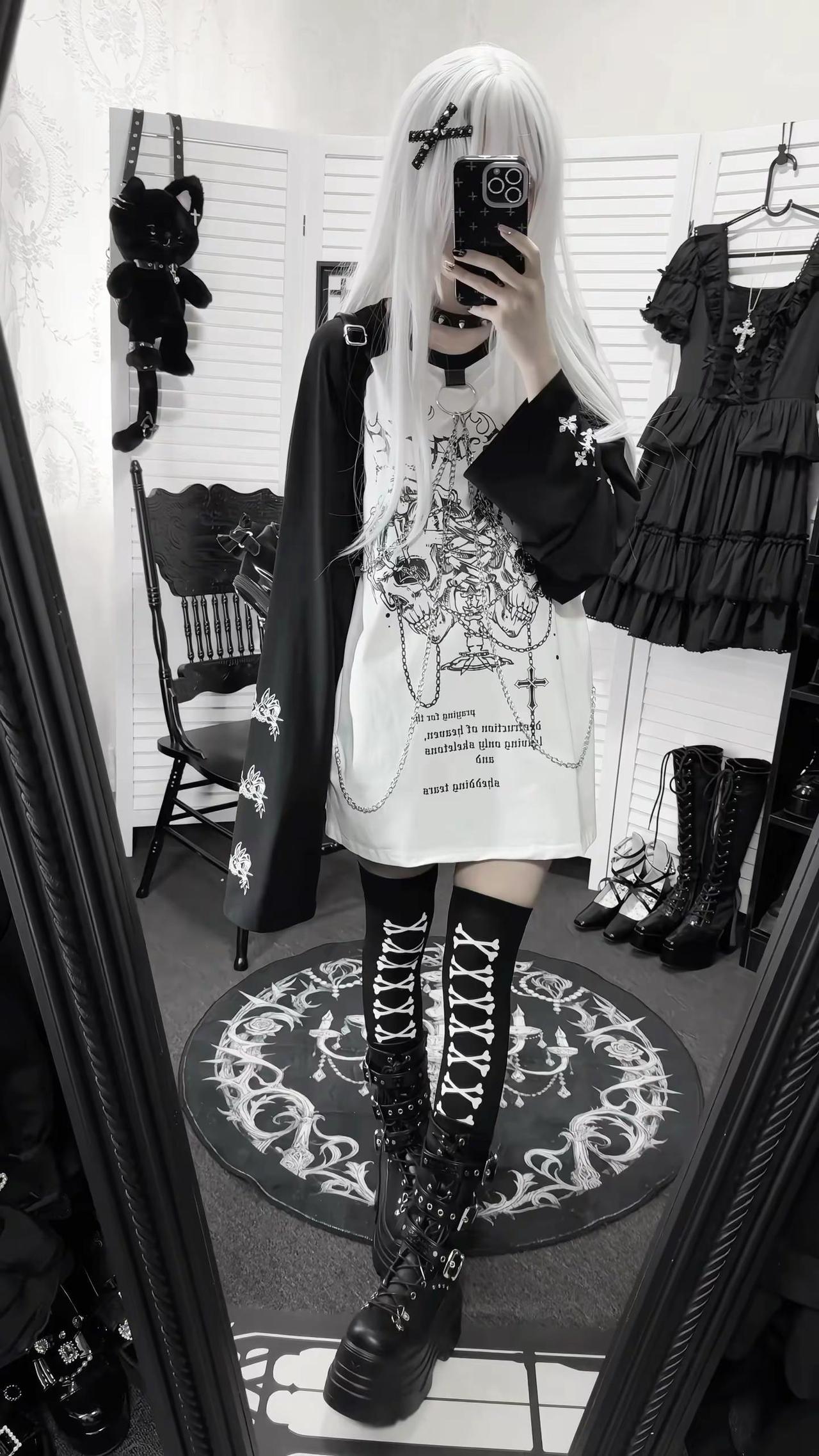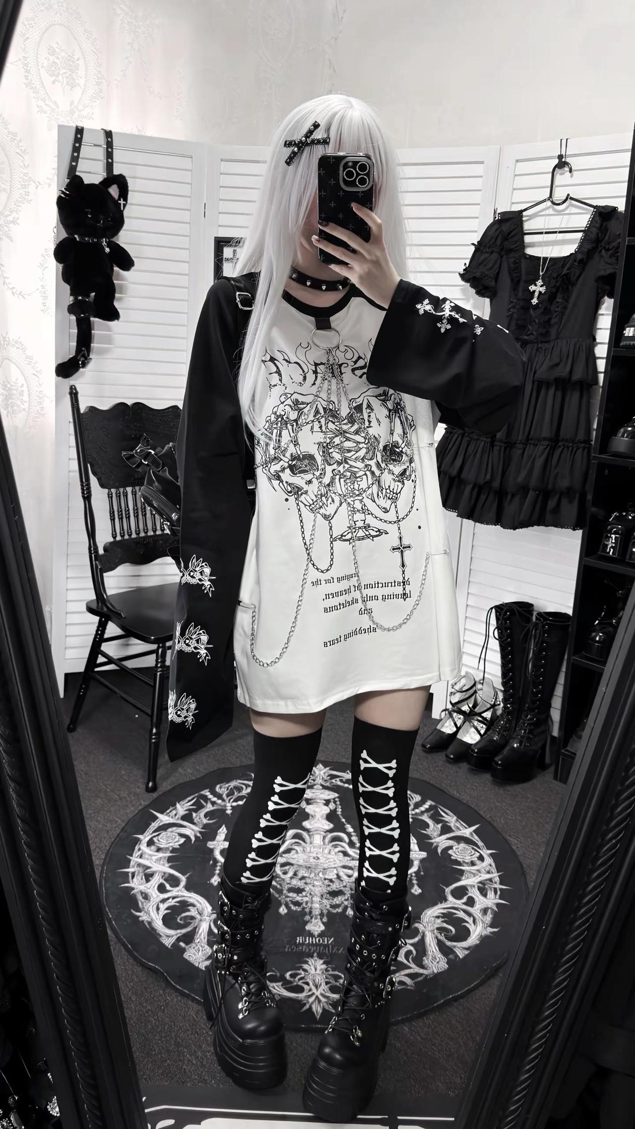 囚笼复骨|黑白亚比T恤·✝︎· 亚文化穿搭 暗黑系穿搭 今天穿什么 黑白穿搭
