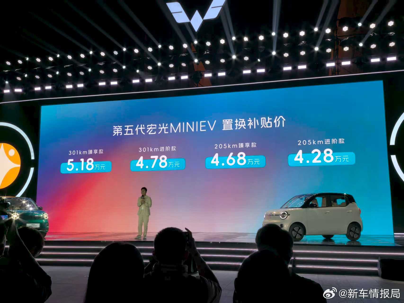 第五代宏光MINIEV正式上市 3月27日,第五代宏光MINIEV正式上市,新车售价为4.48-5.48万元,该车将会使用四门四座设计,加入了更多科技配置在其中,同时带来了2种续航4款车型,并支持快充功能.新车划重点