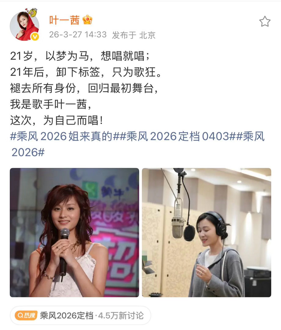 李宇春鼓励叶一茜想唱就唱 《想唱就唱》的前奏一响,青春瞬间重启。叶一茜和李宇春的连线真的好戳人,当年全民投票的时光历历在目,友情一如既往的好,期待叶一茜在浪姐的精彩表现