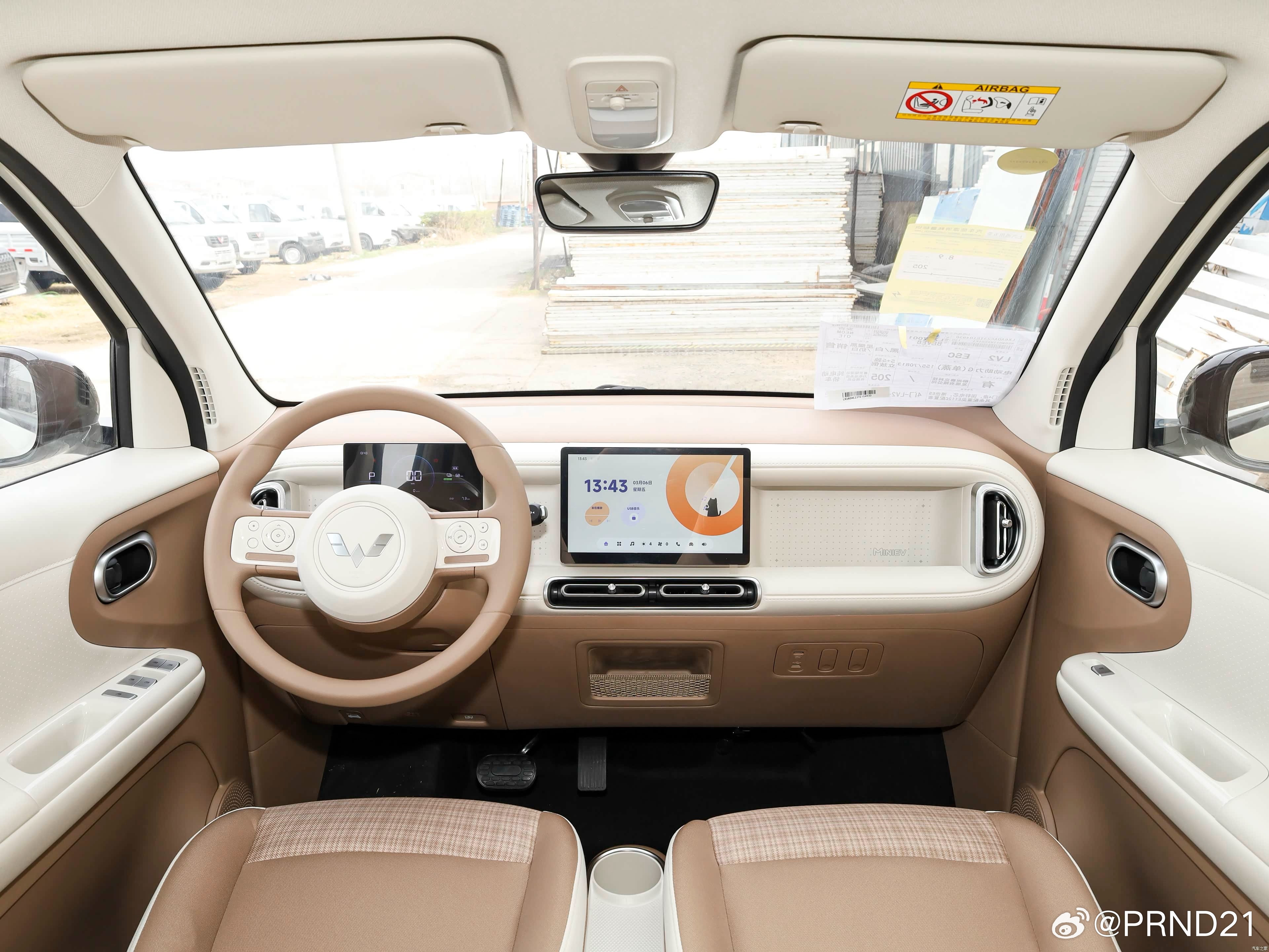 进阶版这个空调旋钮看着真不错……这块板子怎么用还没太看懂,磁吸?或者是能挂个手机支架上去?配上这花格子座椅还挺带感啊……第五代宏光MINIEV42800元起玩趣上市