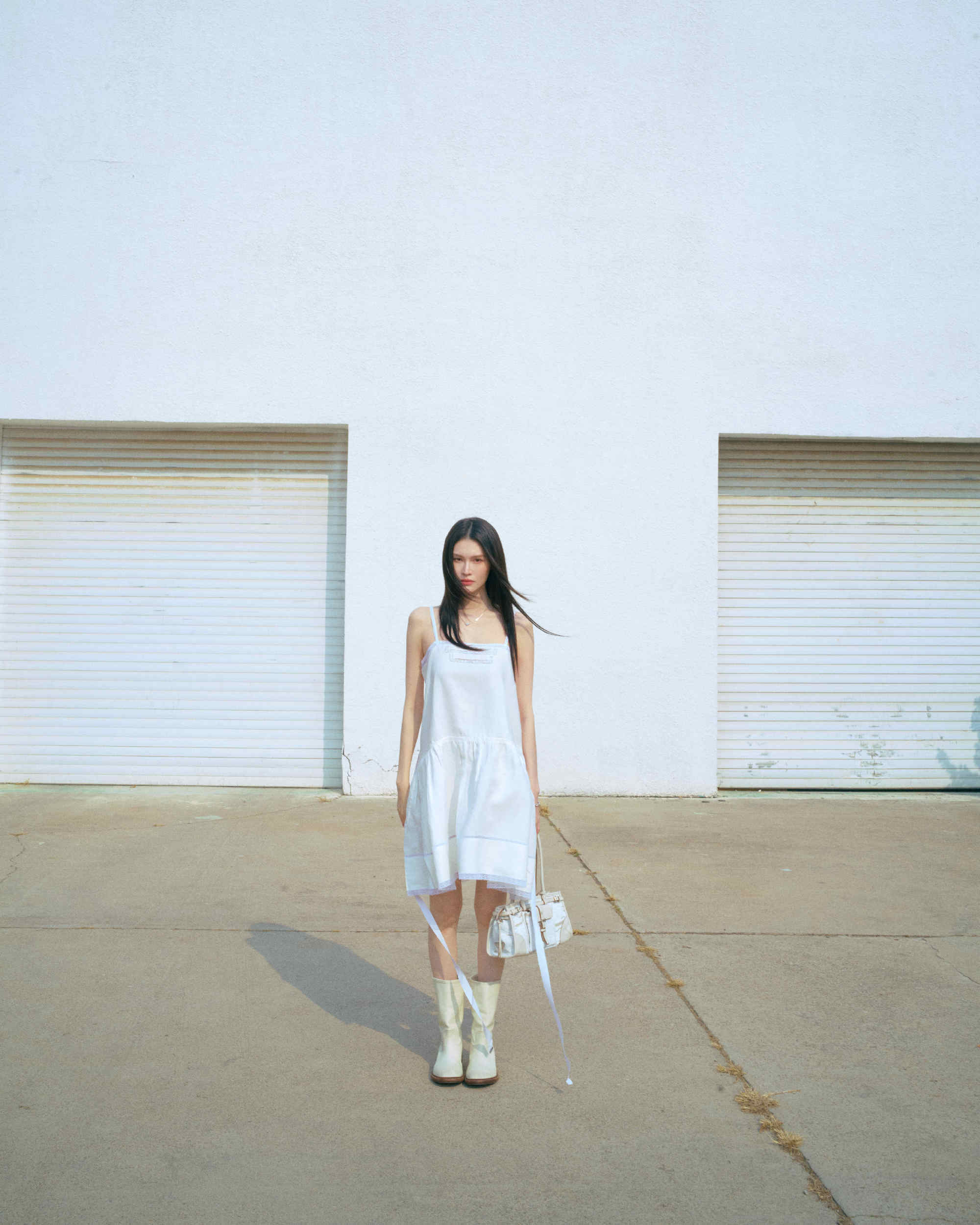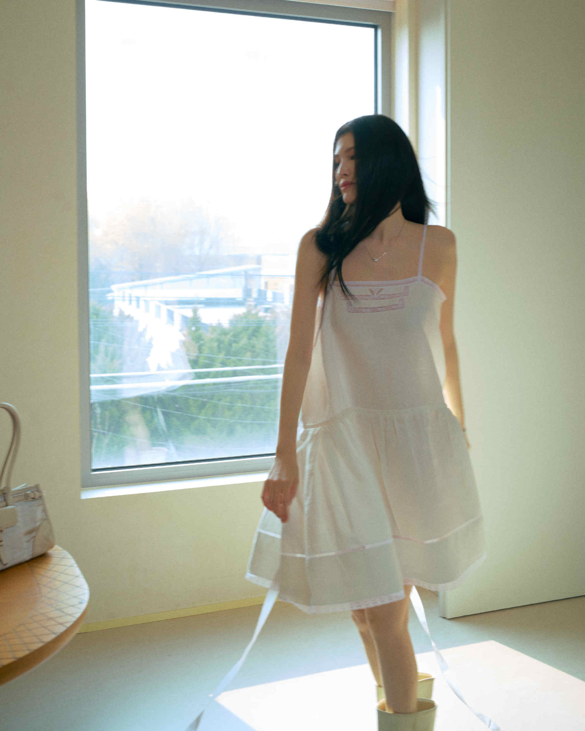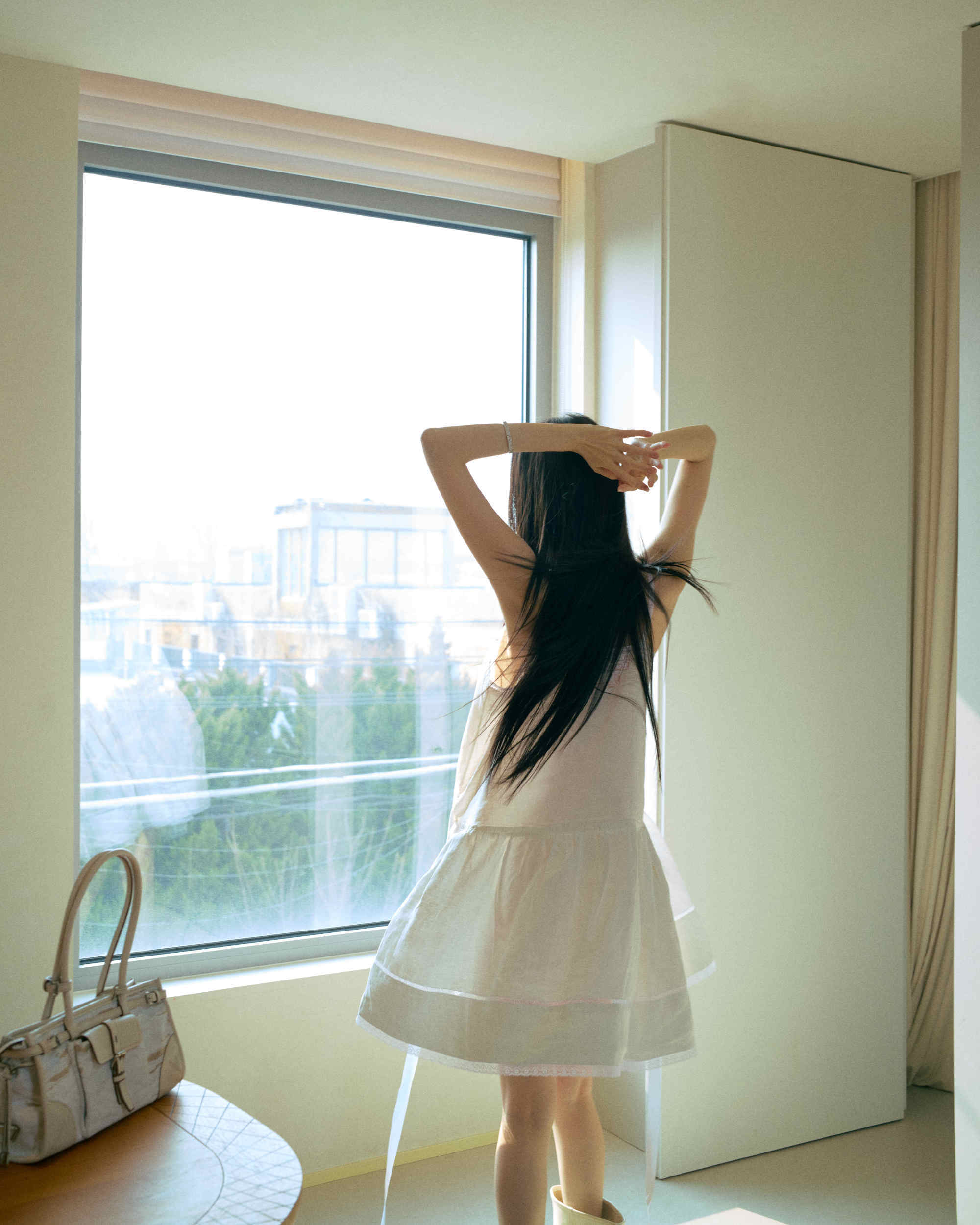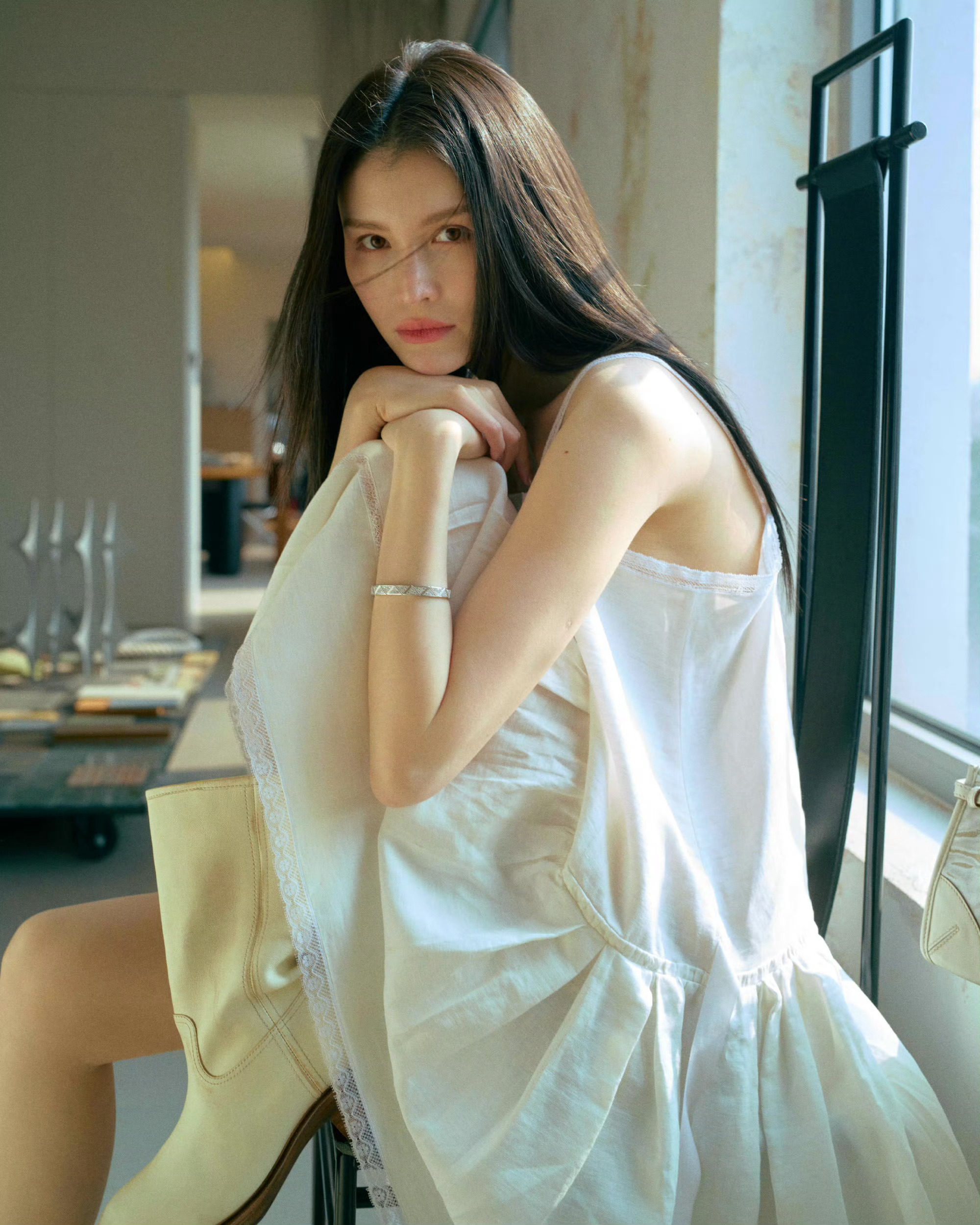 何穗Prada白色迷你裙,Prada精品珠宝Eternal Gold系列