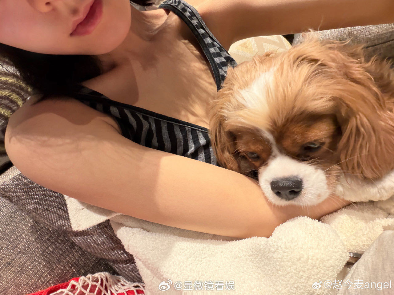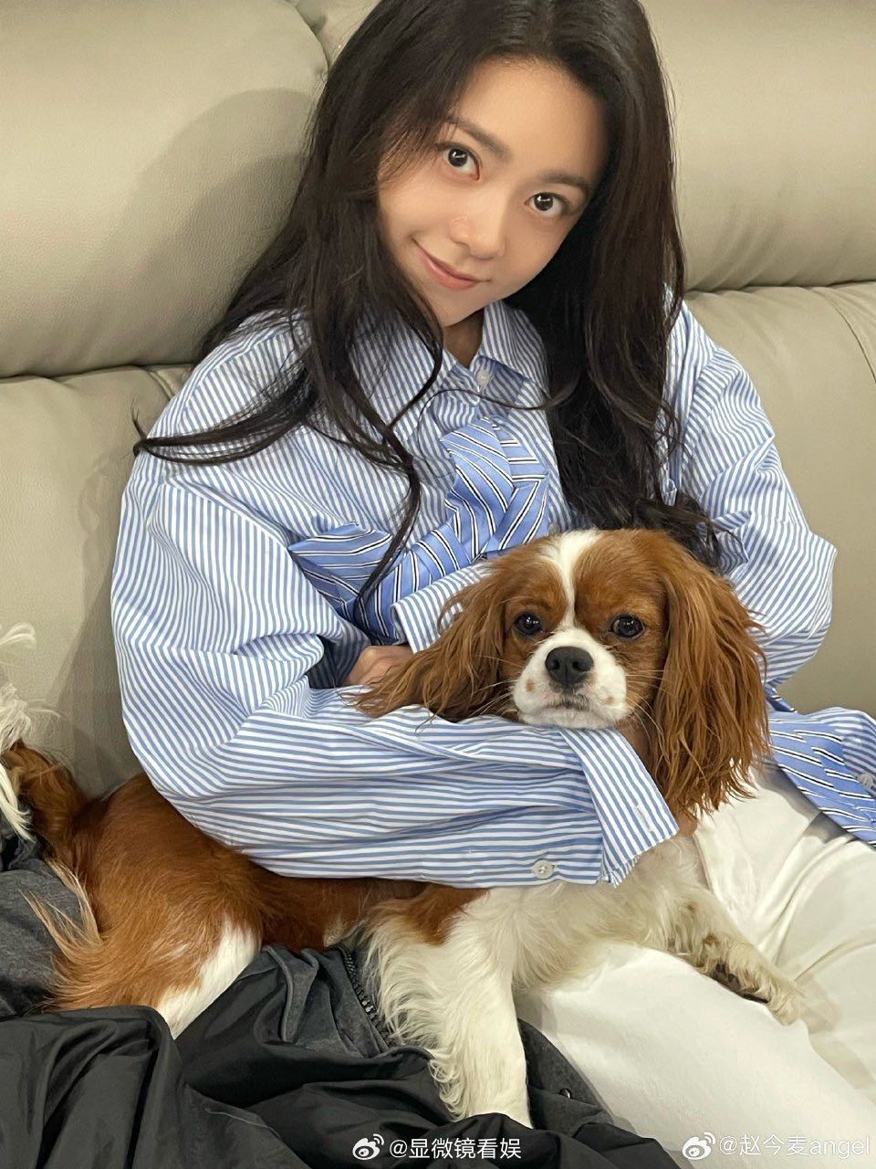 赵今麦抱拿铁合照 好治愈的一条日常!赵今麦晒和拿铁的合影,两个可爱鬼没错啦~