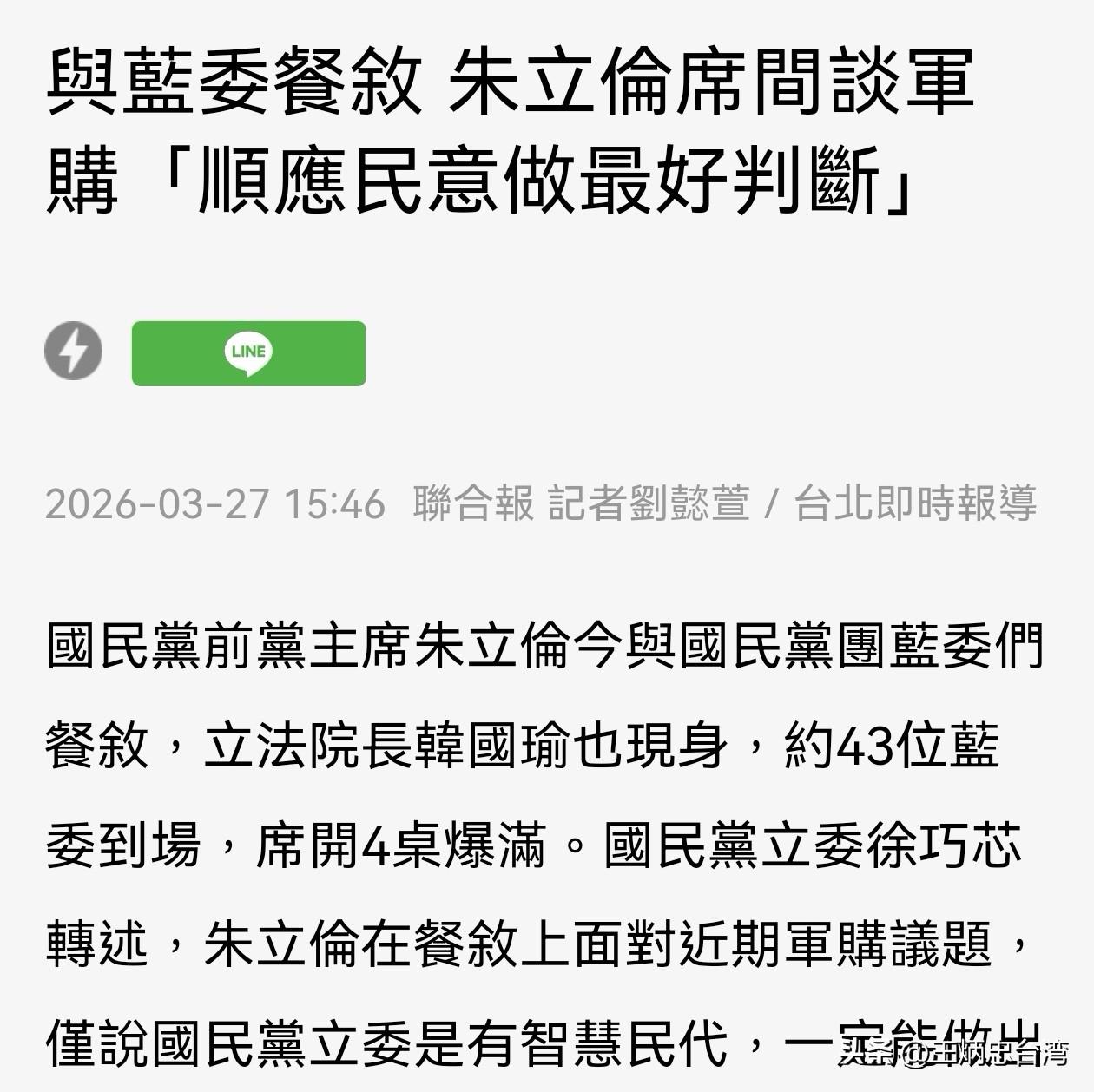 这周发生的许多事,包含马英九疑失智,柯文哲遭重判,蔡正元今入狱,朱立伦高调宴请蓝立委,其实都不是个别事件,必须放在一起观察。 正如陈凤馨日前在赵少康节目所言,马英九基金会背后的人会如此大动作“处理”萧旭岑,朱立伦会通过展现自己在国民党的能量来杯葛郑丽文,都令人高度怀疑是有一股神秘力量在运作。 陈当时还公开劝朱,如果执意要宴请,就单纯慰劳国民党立委,不要多谈其它。 到了今天中午,朱立伦果然还是搞了这场犹如“另立党中央”的局。媒体聚焦韩国瑜也到场,并表态“朱立伦是他心目中永远的主席”、“希望还能继续并肩作战”。台媒“联合新闻网”下的标题是:“与蓝委餐叙 朱立伦谈军购 ‘顺应民意做最好判断’”。 即便徐巧芯到我脸书做了澄清,表示以她在现场的理解,朱立伦没有谈军购,所谓“顺应民意”是指对所有议题。但是,以朱立伦这样的政治老手,会不知道搞这场排挤郑丽文的餐聚,必然引发争议?况且,如果是如他所言,是慰劳国民党“立委”先前反罢免的辛苦,那会不会也拖太久,甚至拖到他都已经卸任主席快半年了? 又或者,这本就是一场刻意安排,就是要敲打郑丽文? 马英九基金会诡异的人事风波,也是如此。今天马英九基金会开董事会,董事之一的李德维证实,萧旭岑和王光慈的所有人事任命案,马英九都有点头,真的是他“忘记了”。 综合我去年近距离观察马英九所见,及愈来愈多消息传来,外界其实已经明白,马英九的思绪大概真的出了一些状况。那么,背后操控马英九的人,何以要这么大动作斗萧旭岑,甚至还要将萧“送交法办”,引民进党的东厂黑手进入?这难道不也是对郑丽文的敲打? 现在柯文哲被重判,很多人只会重复酸他当初“破坏蓝白合”。但不要忘了,问题的根源还是出在朱立伦坚持不办初选,征召连许多蓝营自己人都挺不下去的侯友宜。蓝白合谈判过程中,民众党的黄珊珊固然阻碍两党合作,已经神隐多年又忽然“出山”任侯友宜总干事的金溥聪,不也是另一个裂解蓝白合的关键人物? 今早蔡正元入狱了。一些大陆网友因为不喜他嫌大陆不够统,便冷嘲热讽说是蔡自己犯侵占罪,本就与蓝营无关。但别忘了,这所谓的侵占,正是因为民进党追杀国民党党产,蔡正元替时任国民党主席的马英九处理党产,才惹来“侵占自己公司”的官非。 这一本已结案的案子,被民进党当局刻意重启炒作,想通过羁押蔡正元,逼他攀咬马英九。正如在柯文哲案中,也是利用押人逼供,逼彭振声、朱亚虎、沈庆京咬柯文哲。最后,沈庆京不愿咬柯文哲,与柯双双被重判;蔡正元不愿咬马英九,落得入狱的下场。 一些不了解台湾政治的大陆网友,只觉得这些都是个别的事件,萧旭岑被马英九开除就开除,柯文哲被重判就重判,蔡正元被关就被关。甚至有大陆媒体人私下向我求教,想了解这些事件的原委,竟还反问我“在野党还能影响台湾军购案吗”、“马英九基金会的人事案,关蓝营什么事”。 事实上,正是因为郑丽文对军购案的杯葛,和大陆高层的互动,都超过美国原先的预判,他们实在没有料到,郑会“不听话”到这种地步。所以,卢秀燕访美了,朱立伦出手了,而那个担任郑丽文副手、竟敢公开说美国在台协会处长不过是科长级的萧旭岑,也就遭受“整顿”了! 当然,也有大陆网友或台湾统派朋友会说,就算郑丽文访陆被干扰,蓝营可能又分裂,那又如何?国民党垮了,某种程度来说,或许统一的阻碍也少一点。可现实的情况是:国民党不会完全垮,而是被亲美势力夺权,然后再利用国民党的招牌和机器,绑架住原本已跟随郑丽文、勇敢挣脱“亲美反共”的蓝营群众,让国民党半死不活,继续配合美国对台湾的操控。 所以一切真正的源头,还在他们背后的主子美国。特朗普如今深陷中东战事,究竟未来发展为何?还有众所瞩目的中美元首会晤,到底会怎样登场,释放哪些信号?这才是决定台湾前途的重点所在。