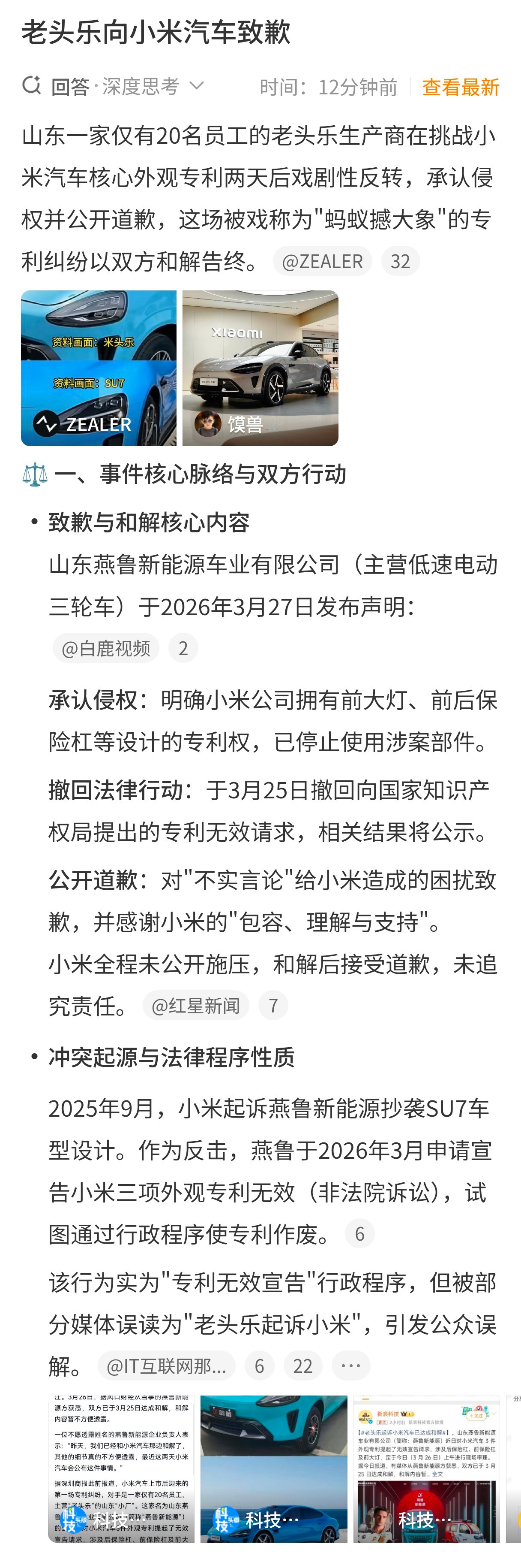 老头乐向小米汽车致歉现在的老头乐“车企”也是够离谱的,碰瓷都能碰出喜剧效果,把互