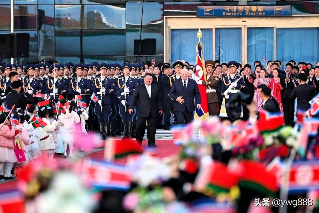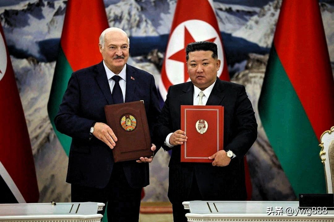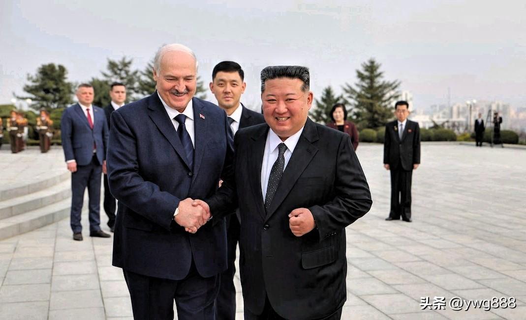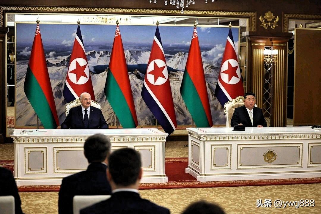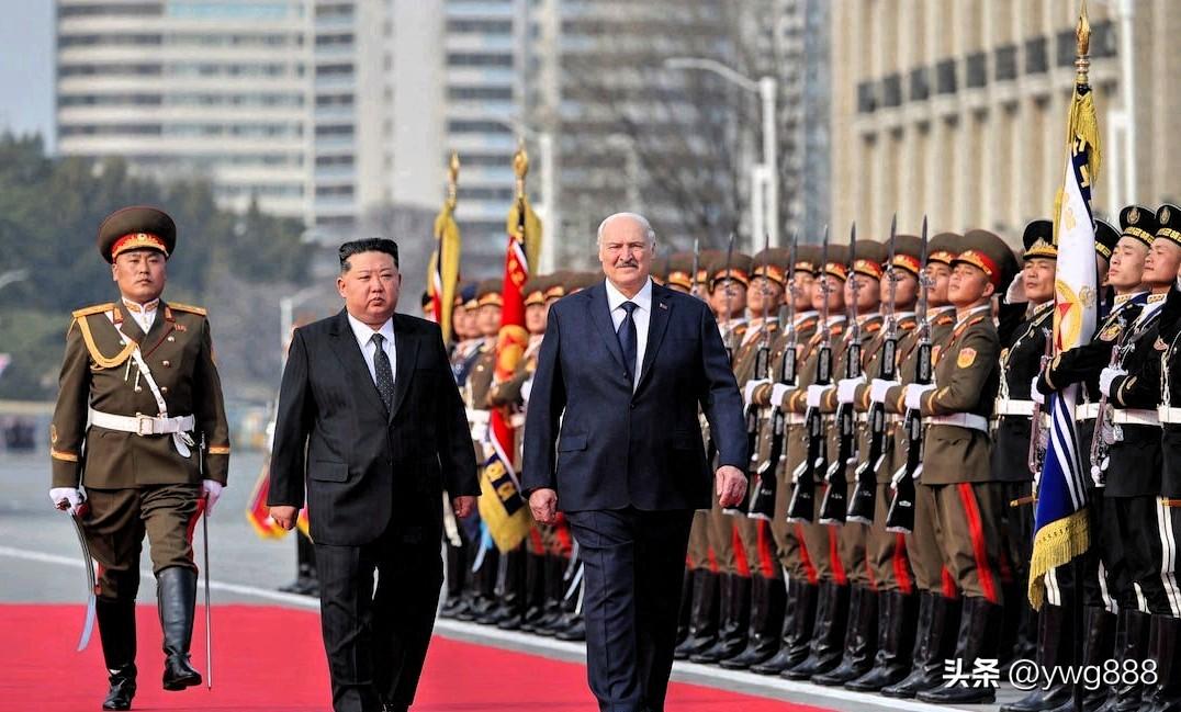 3月26日——白俄罗斯总统亚历山大·卢卡申科周四与朝鲜领导人金正恩签署友好条约,并在俄罗斯与乌克兰战争中两个主要盟友举行的峰会上,向金正恩赠送了一支自动步枪。 “以防万一敌人出现!”卢卡申科开玩笑说,引得金正恩大笑。金正恩饶有兴致地仔细查看了这支步枪,并试了试装弹机构。作为回礼,他赠送给卢卡申科一个用炮弹制成的花瓶,花瓶上镶嵌着卢卡申科的肖像。 此次在平壤举行的峰会汇聚了两位均受国际制裁的领导人,他们在长达四年的战争中为俄罗斯总统弗拉基米尔·普京提供了至关重要的支持。