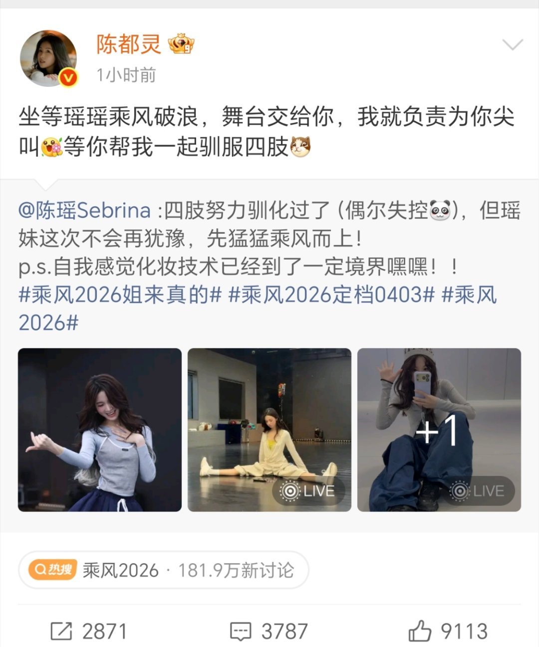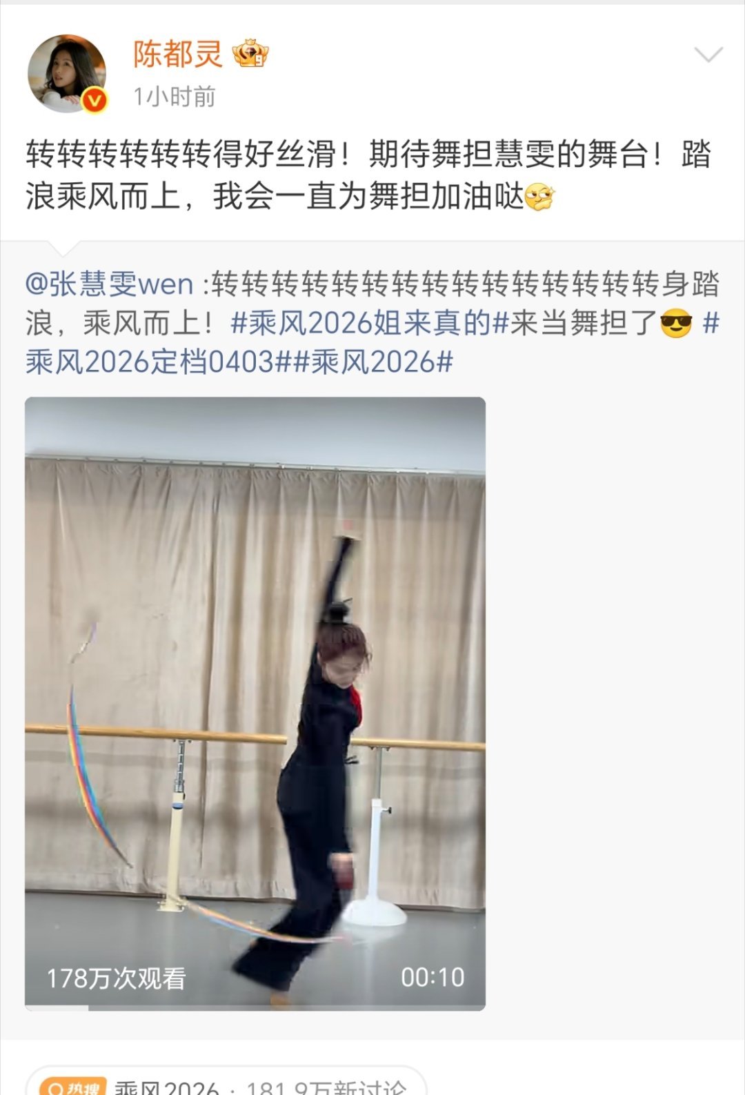 陈都灵连着给温峥嵘,陈瑶,张慧雯三位好朋友转发浪姐官宣博表达支持,真的是好热情又